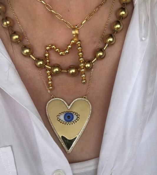 Blue Eye's Heart Evil Eye Necklace. Steel Chain 14K GoldVendor:HoopLaRegular price $68.00 CADRegular priceUnit price / per