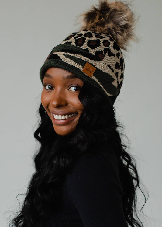Leopard Pom Hat w/ Green Camo TrimVendor:Panache Apparel Co.Regular price $34.00 CADRegular priceUnit price / per