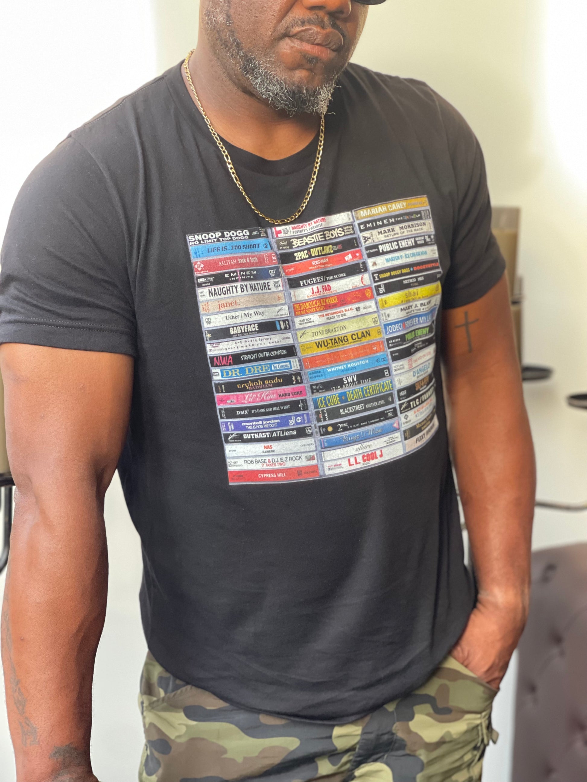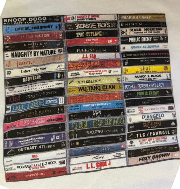 90's Hip Hop -the best era in music in our opinion! Classic Rap Cassette Tape T-Shirt Printed in North Carolina with the latest Direct to Garment printing technology. All artwork is original and printed on a high-quality, super soft t-shirts.