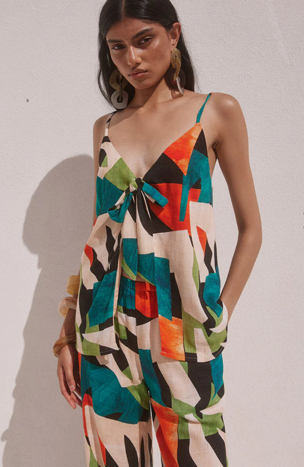 Effortless and cool, our Amelia Top features a relaxed fit and front tie closure, pair this with our Amelia Pant for the complete look. - Low neckline