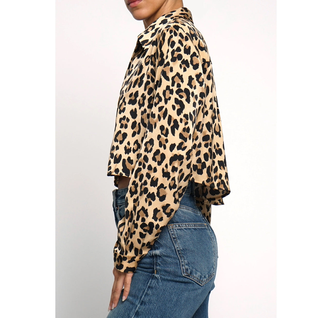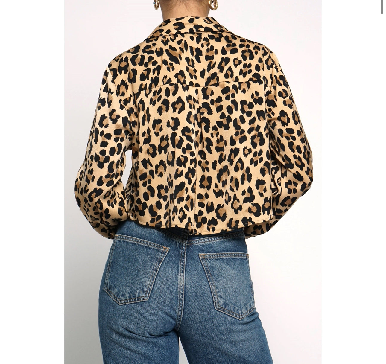 - 97% Polyester, 3% Spandex - Woven - V neckline - Long sleeves - Collared - Cropped