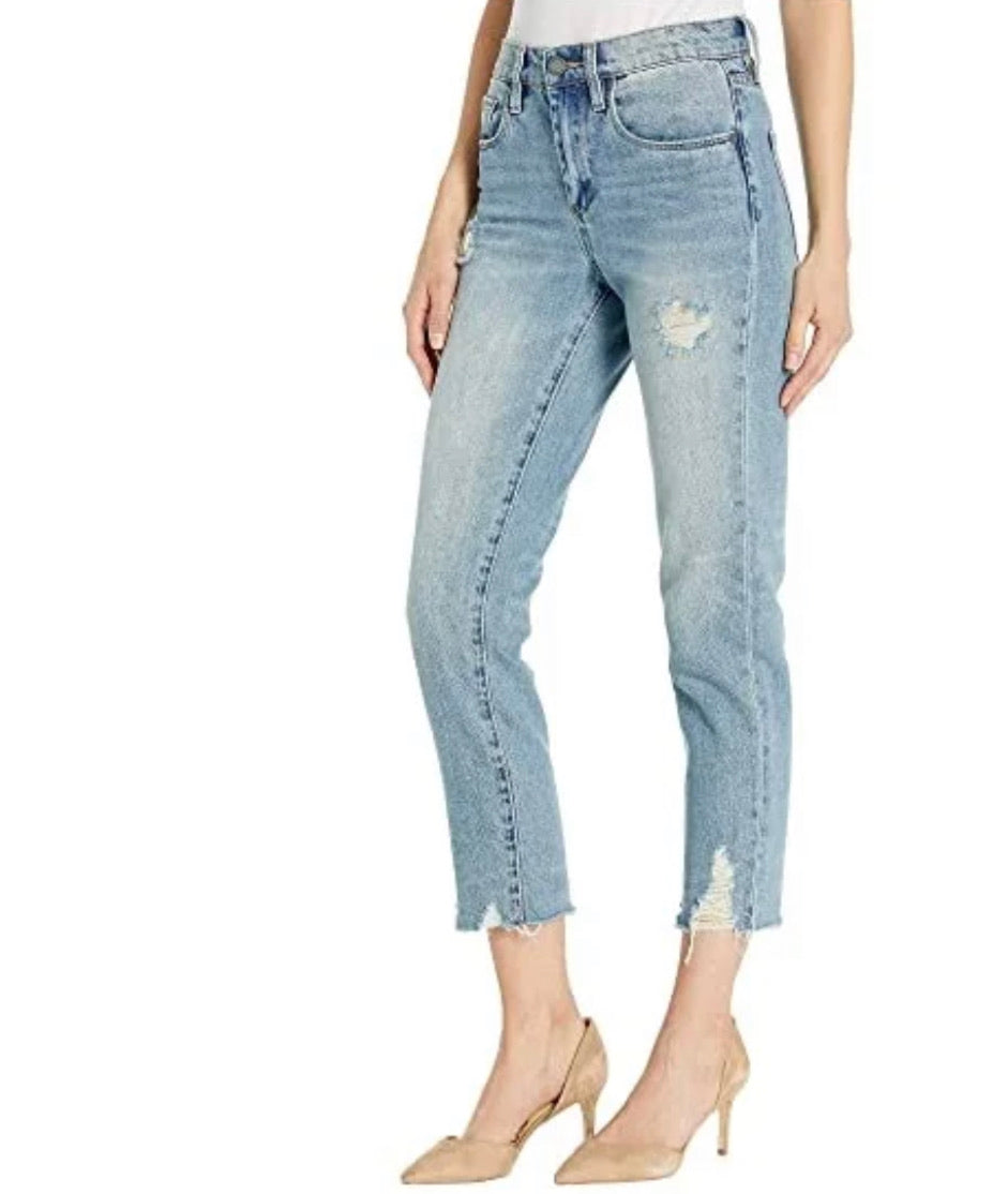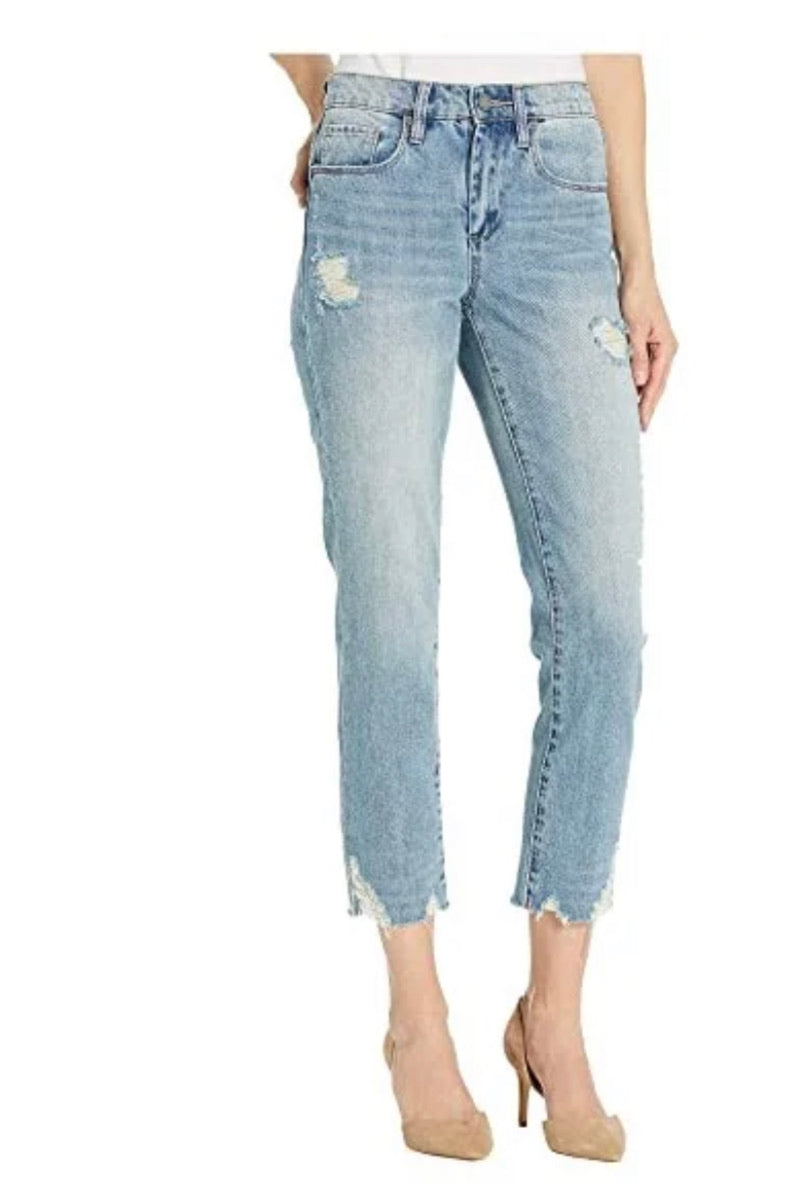 Rigid distressed jean... not to thick and worn in perfectly.:.. we suggest sizing up one size. Slight light cropped up 100%cotton jean