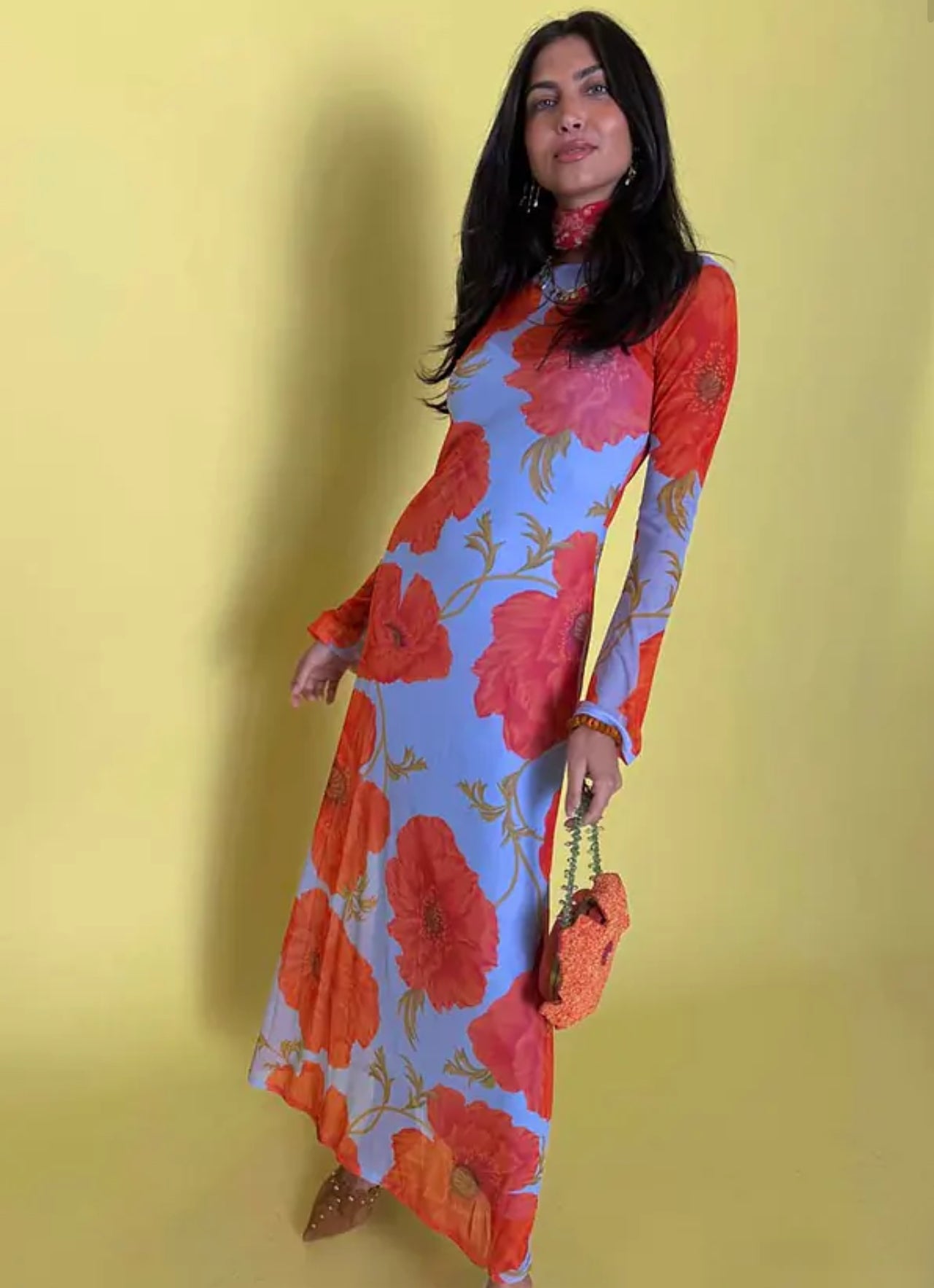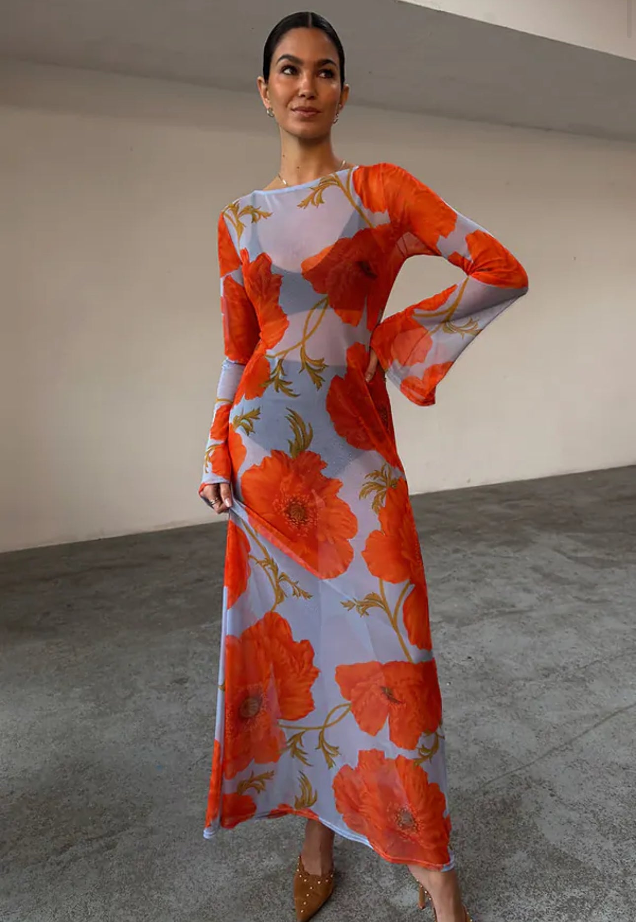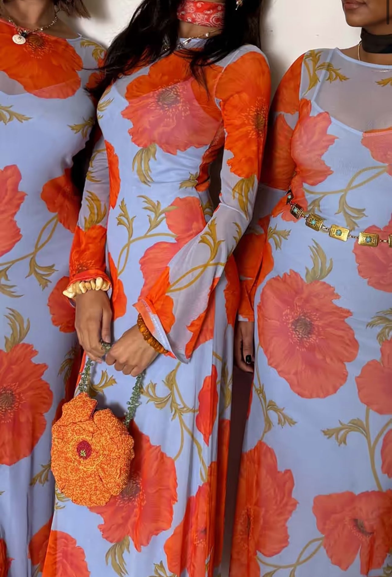 This dress is the definition of feel good dressing! The gorgeously muted pale blue works seamlessly with the contrasting deep red tones of the poppy print, making it the perfect trans-seasonal dress. Add the slip underneath for extra coverage or for more sexy styling wear over underwear or a swimsuit.
