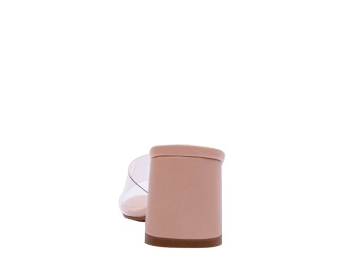 The shoe that goes with everything and makes your legs look a mile long. Clear lucite upper with nude sole and rounded block heel.