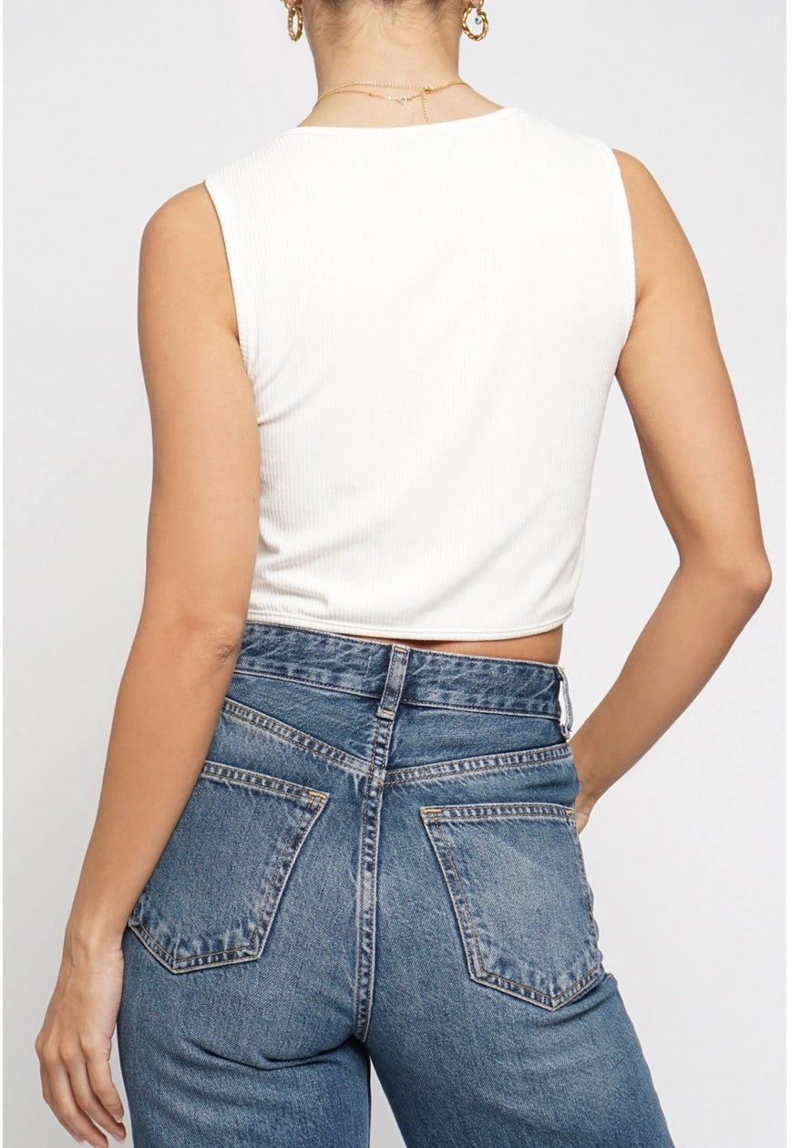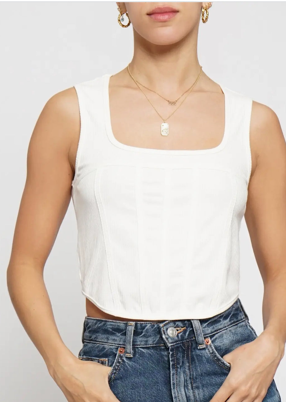 perfect little white corset tank for layering or a stunner on it’s own.