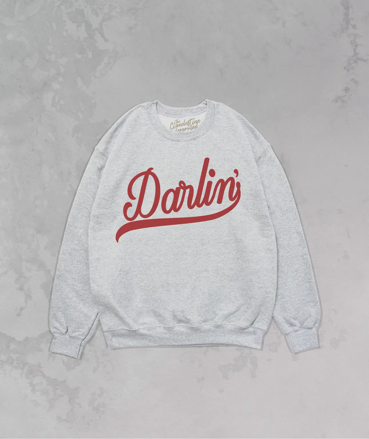 Get all of the southwestern vibes in this oversized Darlin' western inspired sweatshirt! - Features the phrase " Darlin' " in a red ink - Screen print transfer that is heat pressed onto each sweatshirt - Printed on a soft 90's style, cotton / poly blend sweatshirt - Oversized fit