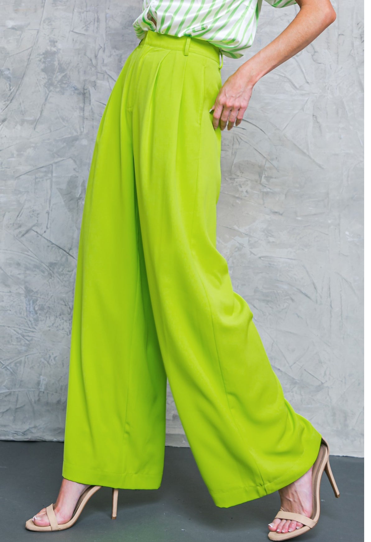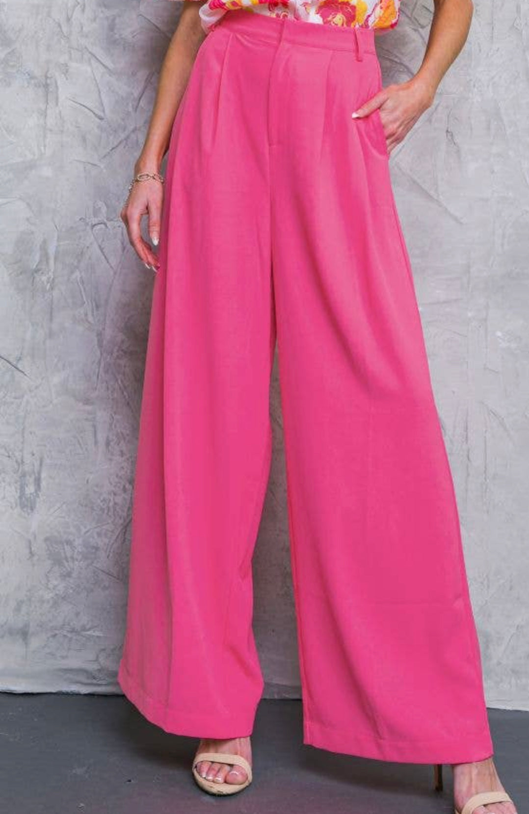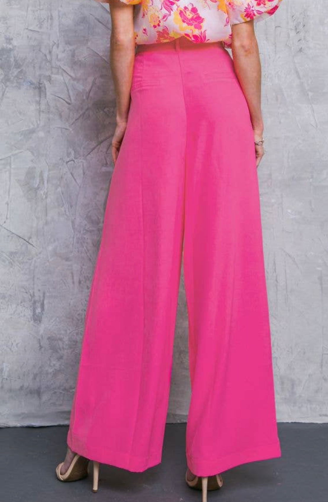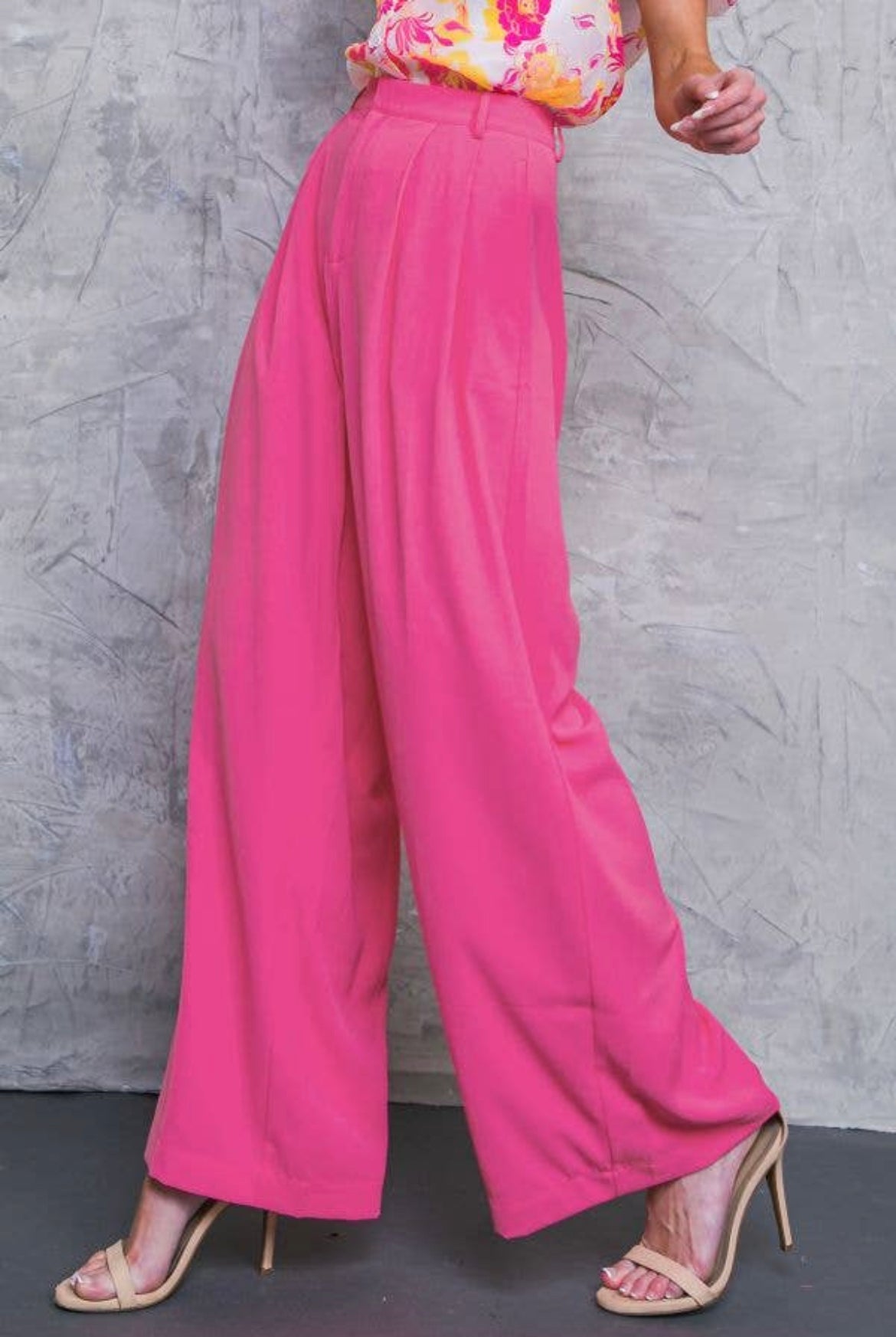 A classic style solid woven pant featuring front closure with pleats, side pocket and wide leg Details Self : 100% polyester Size & fit - Model is 5`8" and wearing size small - Measurements taken from size small - Approx. Length: 45"