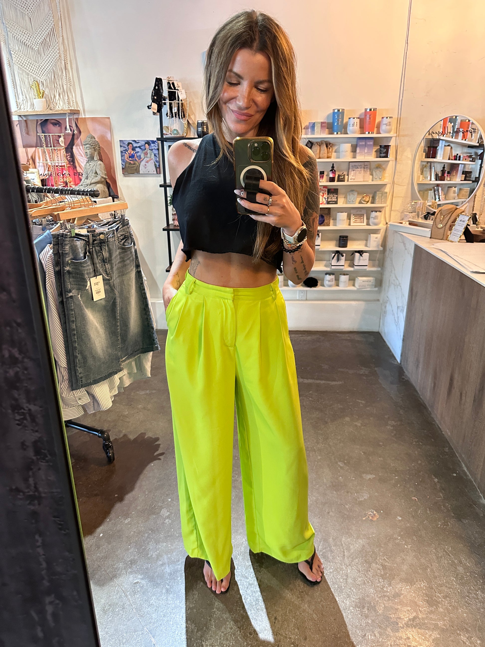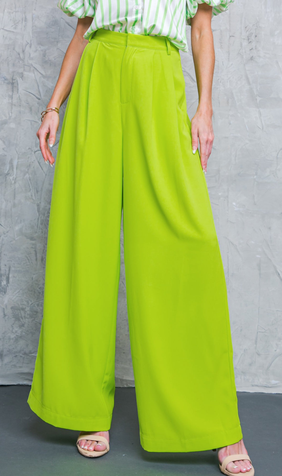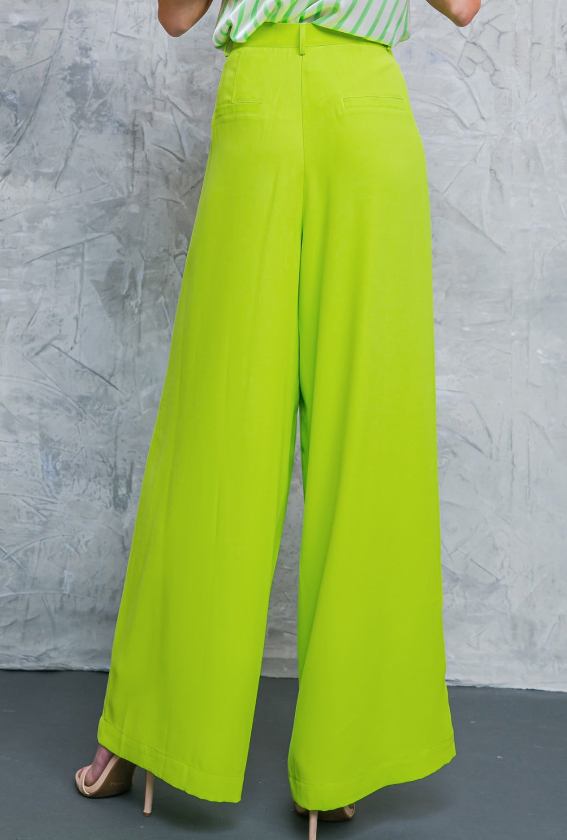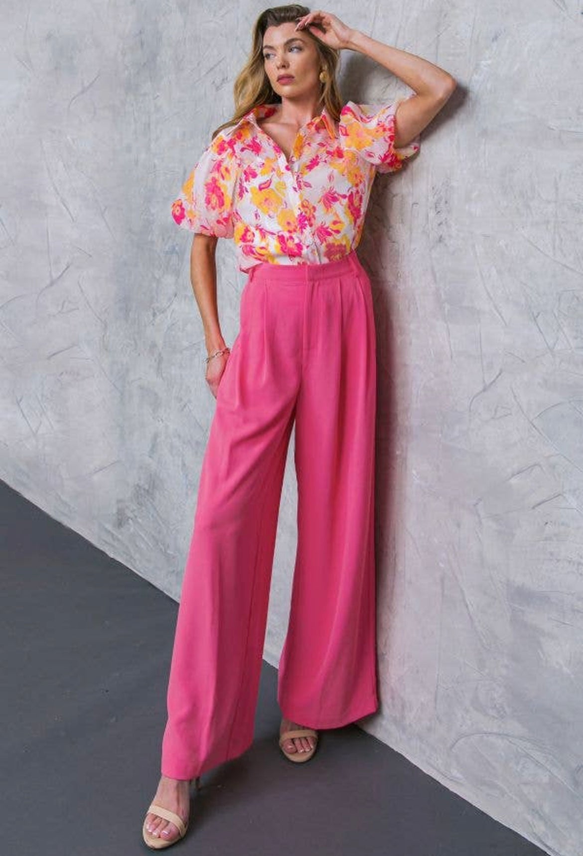A classic style solid woven pant featuring front closure with pleats, side pocket and wide leg Details Self : 100% polyester Size & fit - Model is 5`8" and wearing size small - Measurements taken from size small - Approx. Length: 45"
