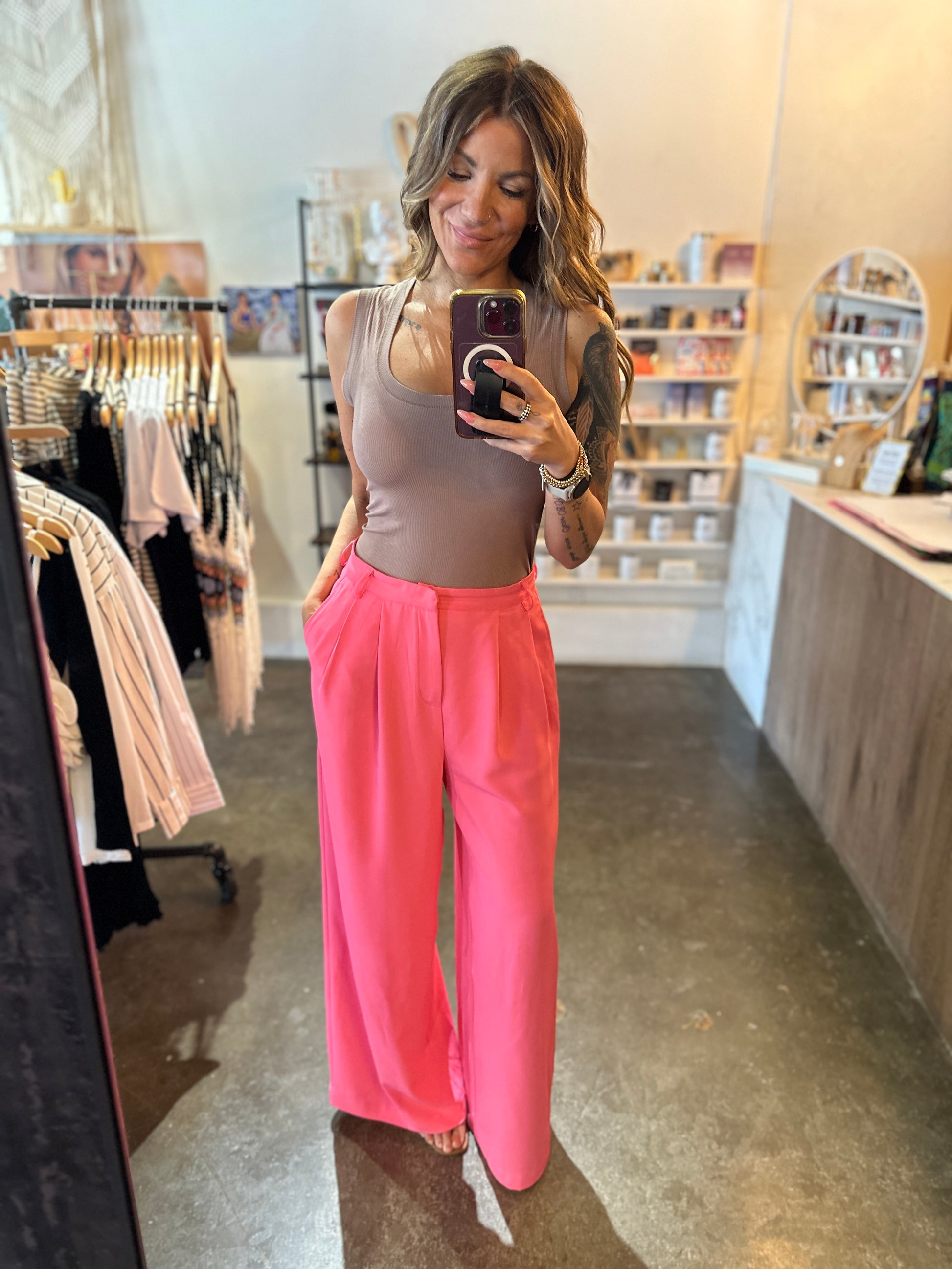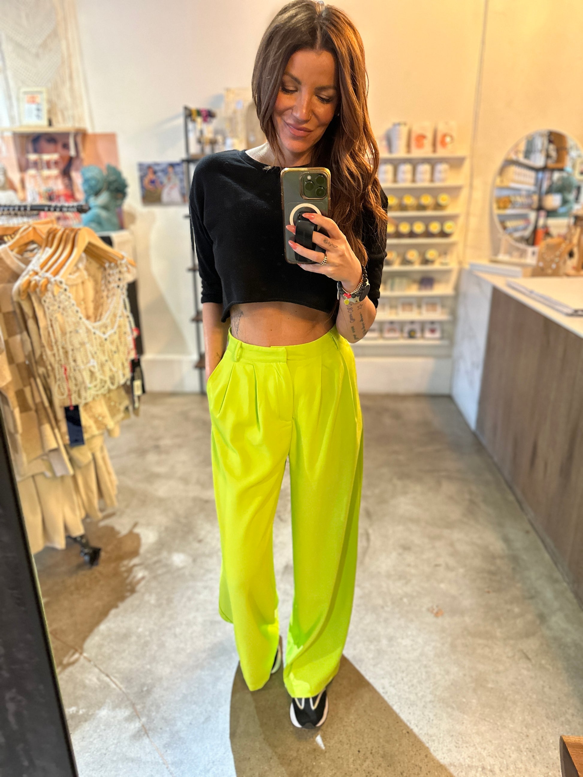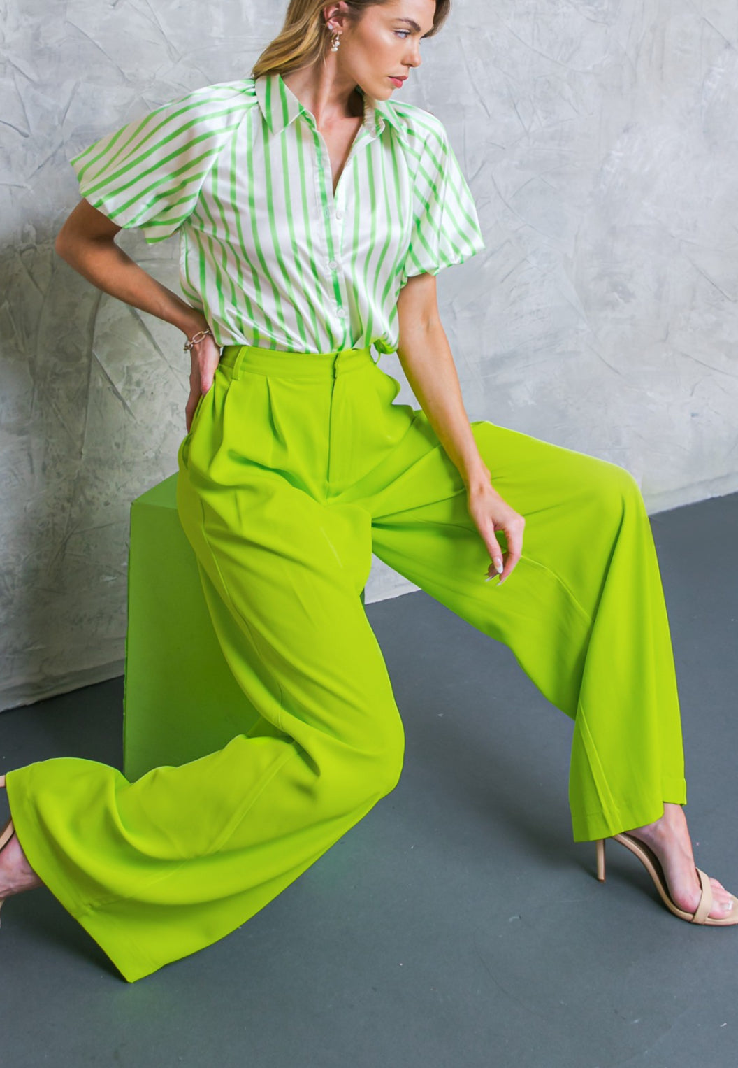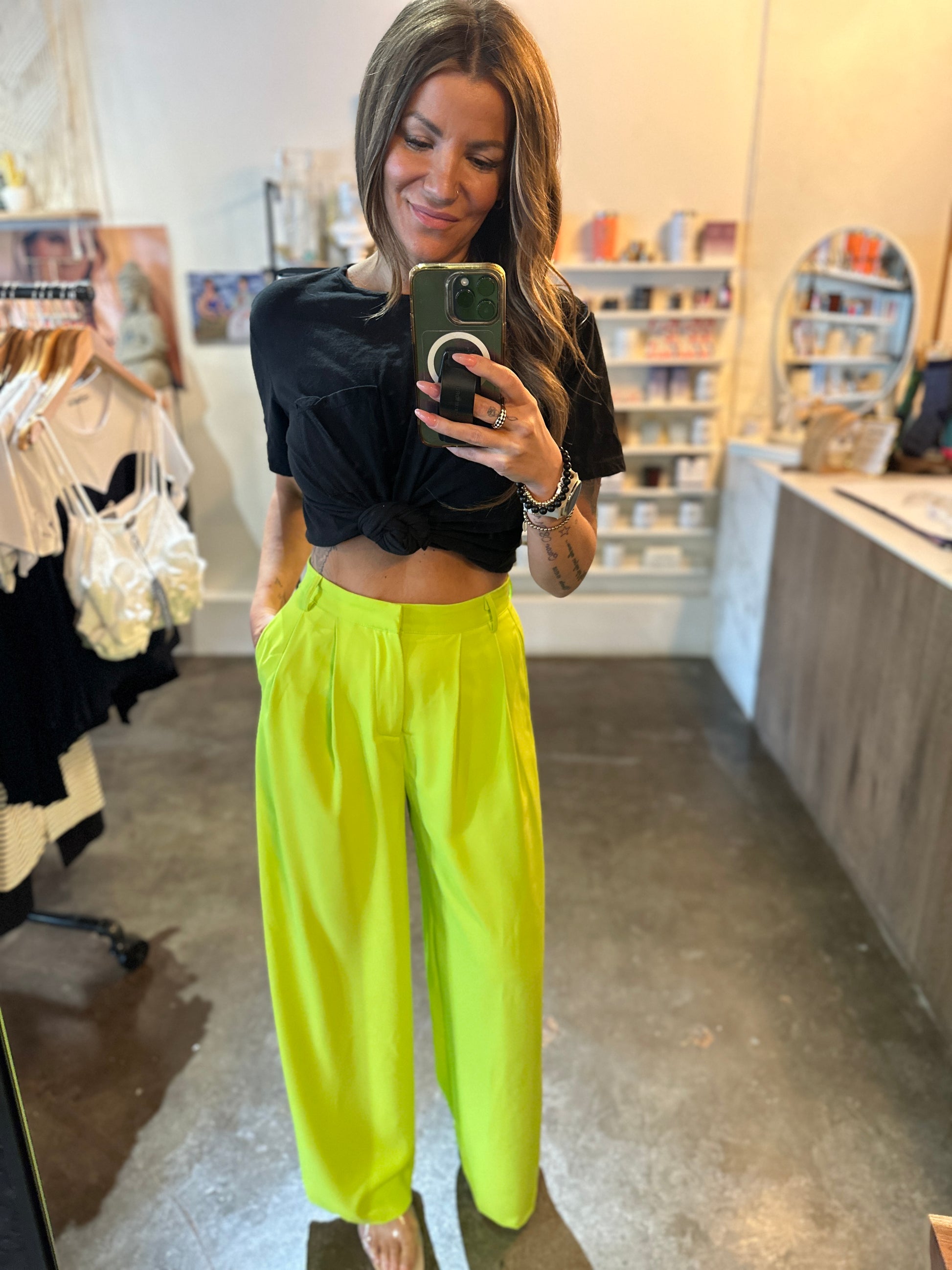 A classic style solid woven pant featuring front closure with pleats, side pocket and wide leg Details Self : 100% polyester Size & fit - Model is 5`8" and wearing size small - Measurements taken from size small - Approx. Length: 45"