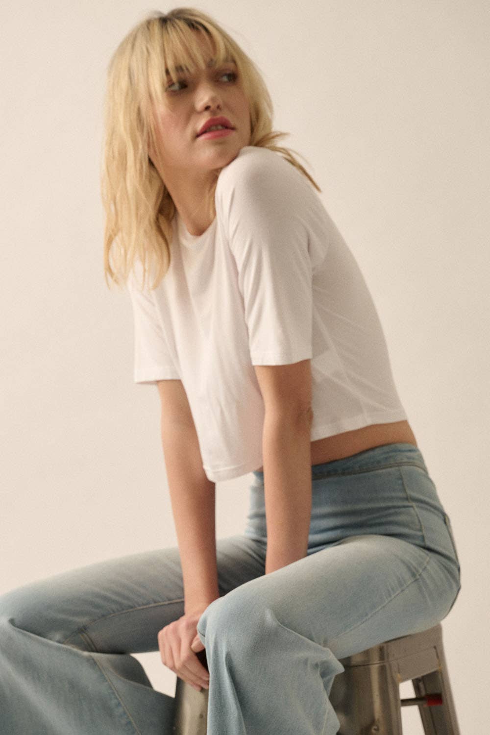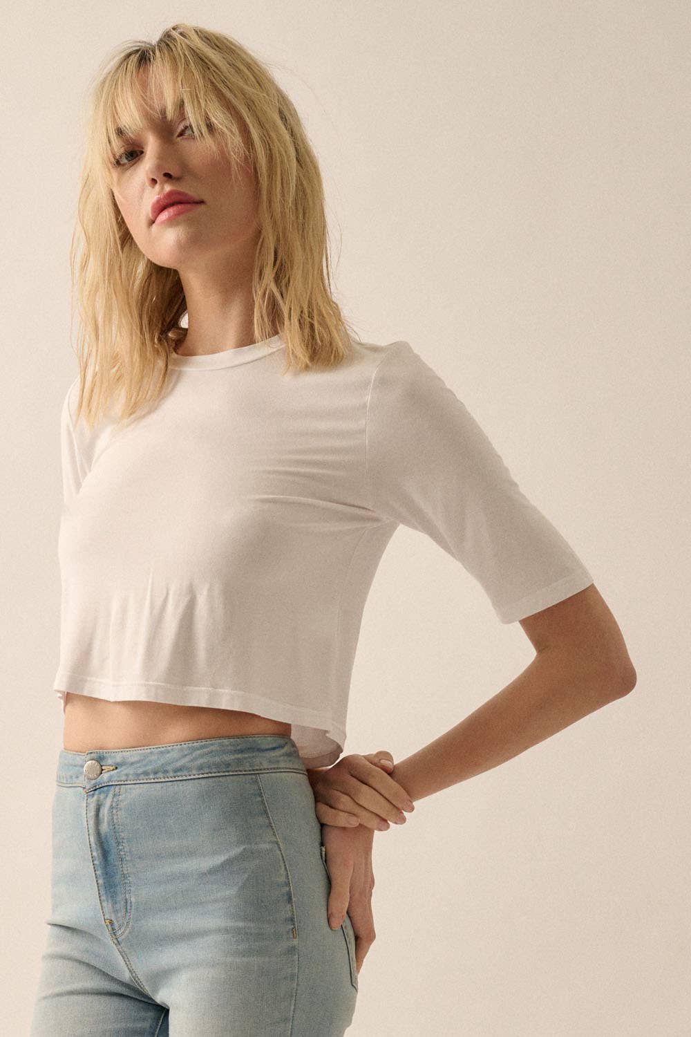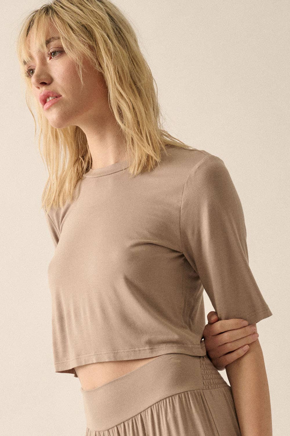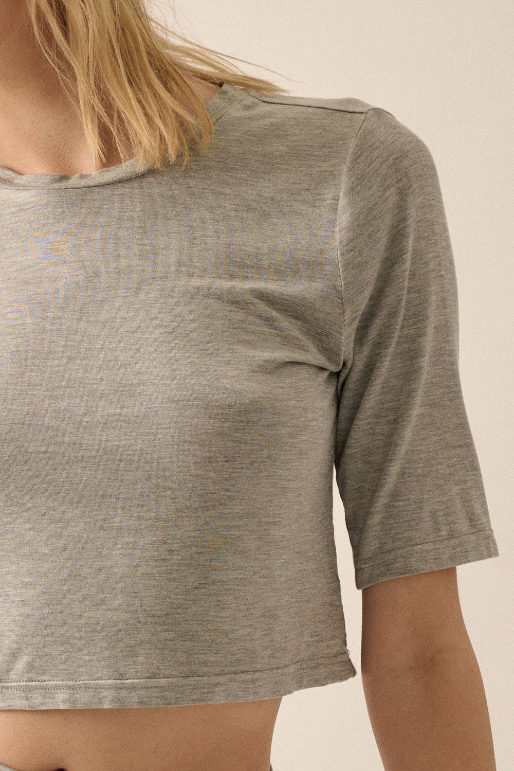 A solid knit crop top with the following features: