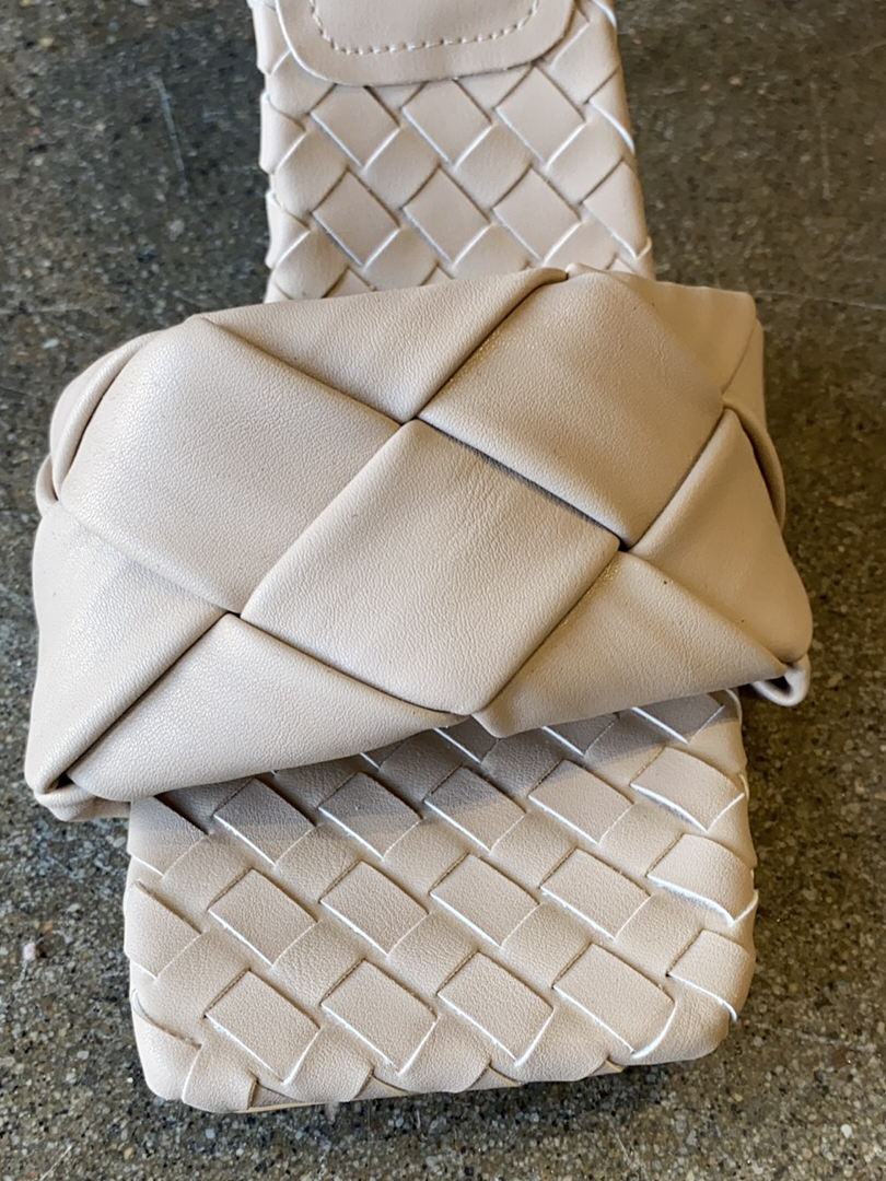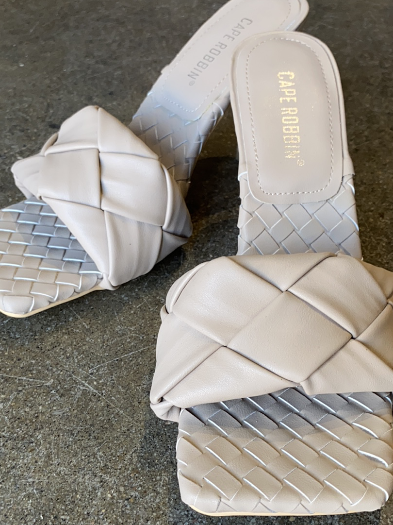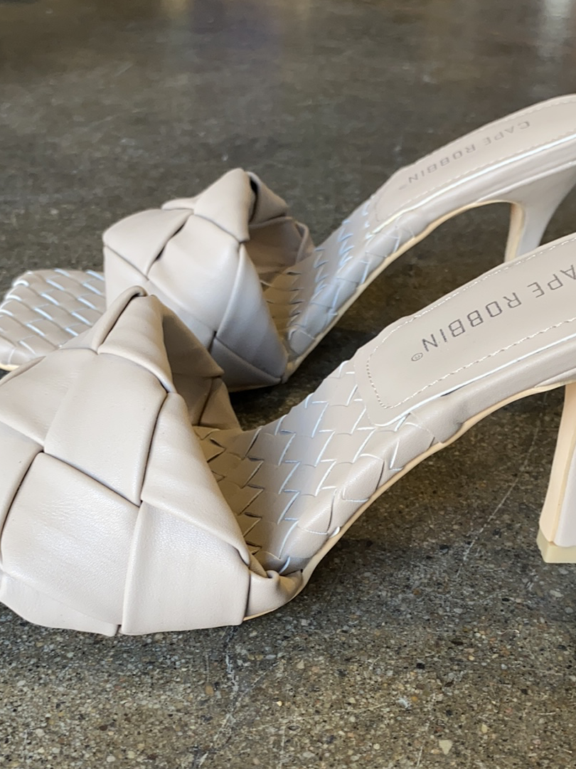 Super chic square toe quilted/braided mules with a 3 inch heel in a nude colour that will go with any colour in your wardrobe.