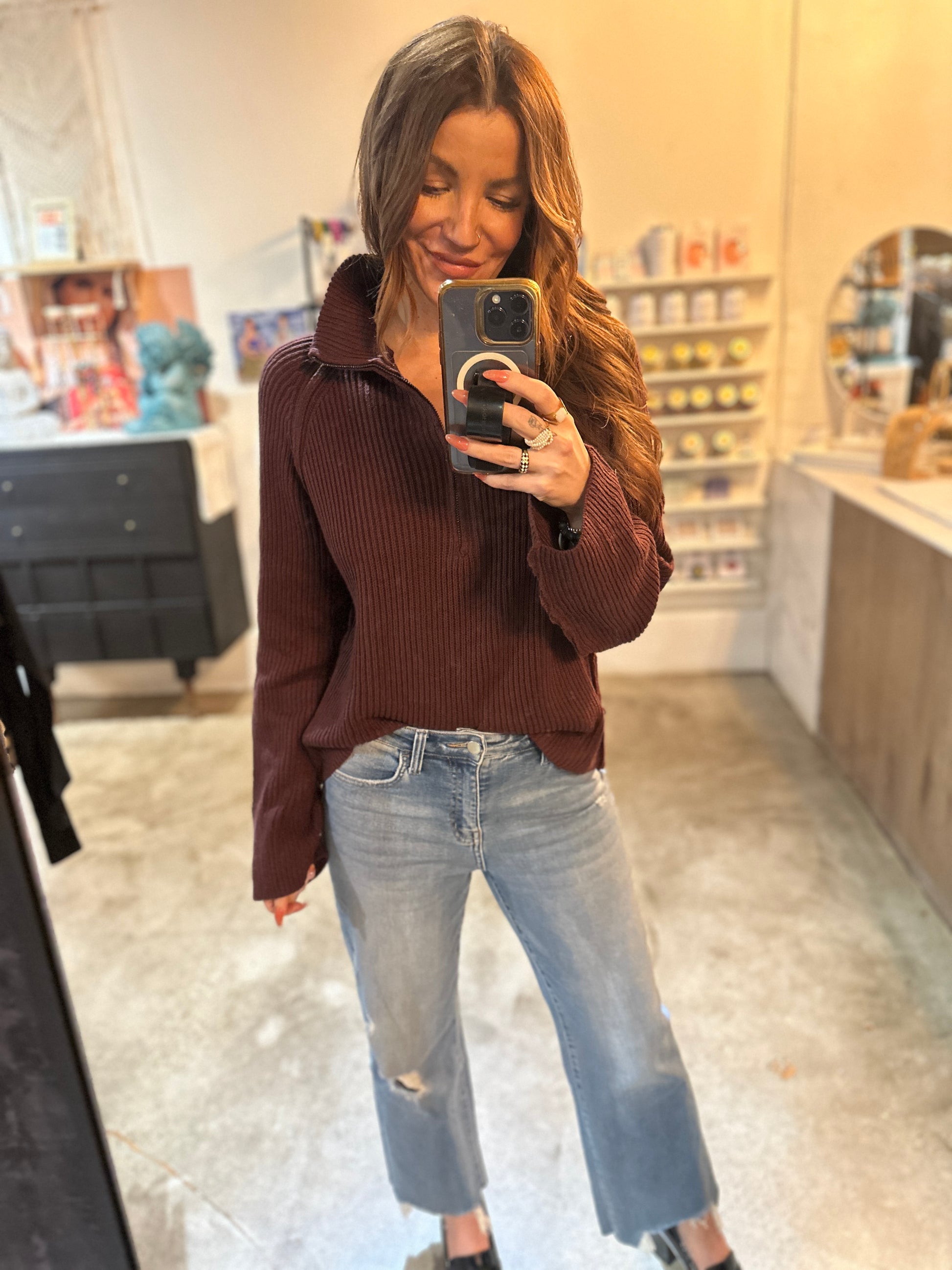 From our core sweater brand comes the Heidi quarter zip knit pullover.