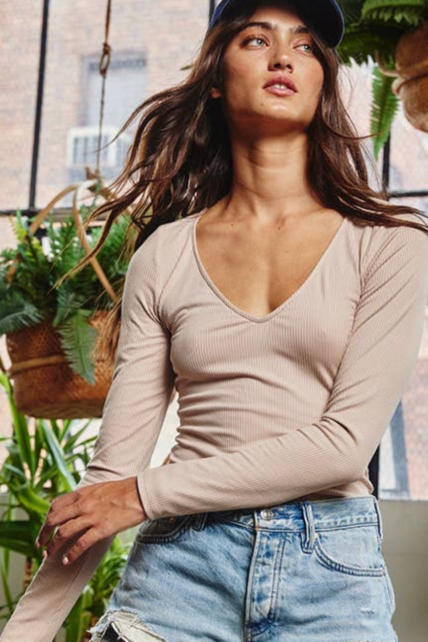 Solid Ribbed V-neck Bodysuit- Ultra-lightweight - Stretchy ribbed fabric with a soft-to-the-touch feel - Designed to be worn fitted to the body - Snap closure for easy on and off