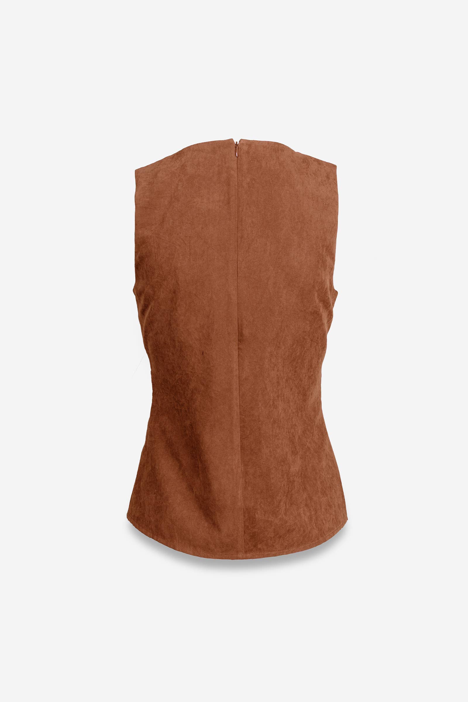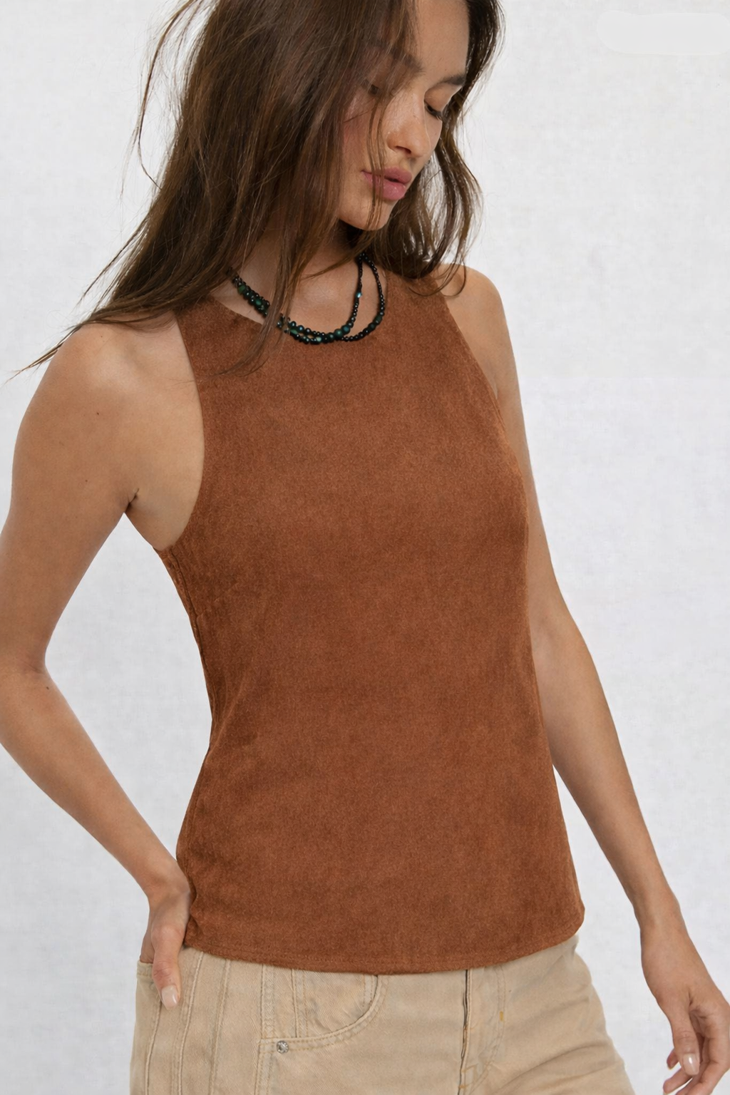 * Women's High Neck Soft Sleeveless Top Minimalist silhouette with a smooth, drapey suede feel High neckline for a polished, modern look Concealed back zipper for easy on and off