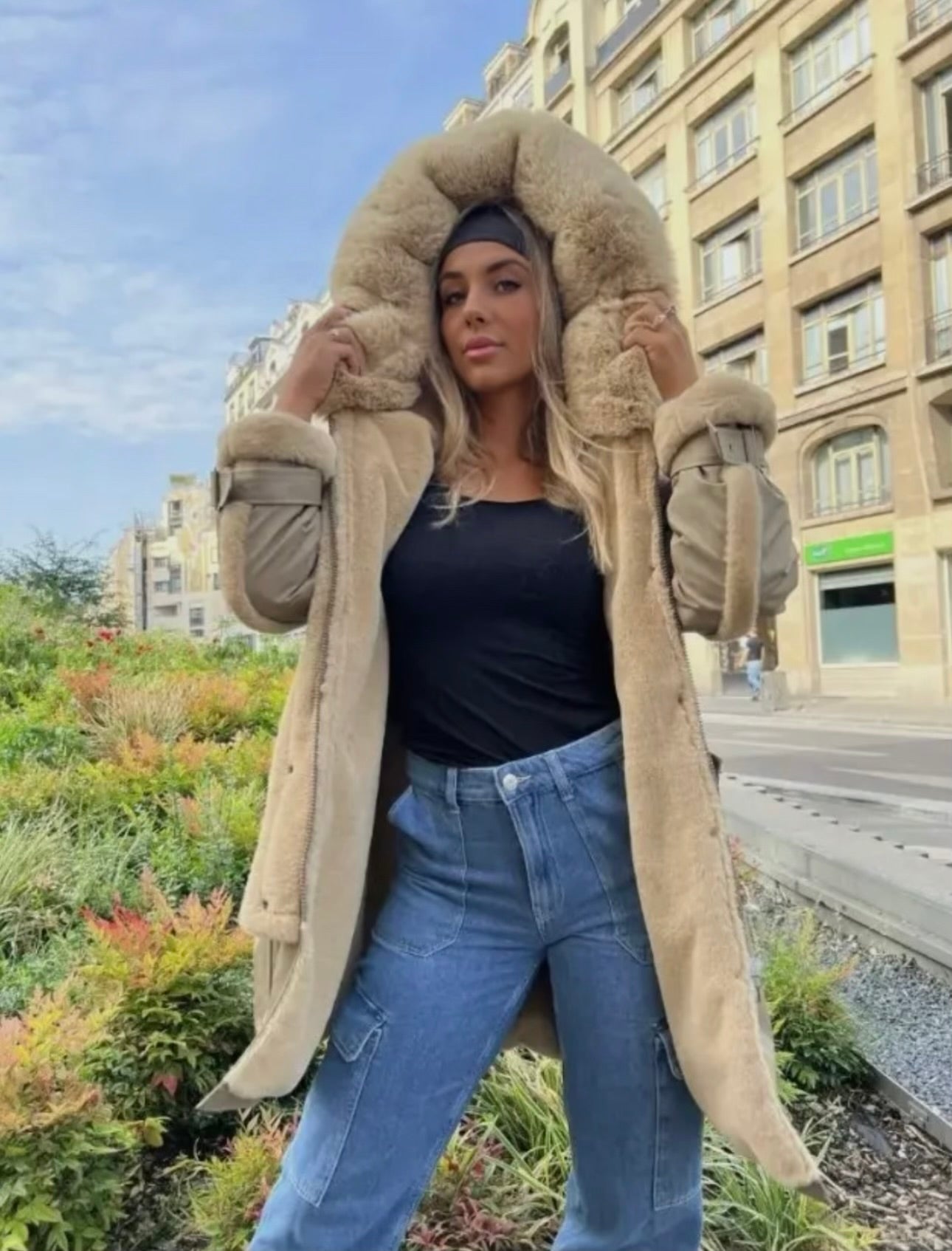 This iconic parka with a hood and faux fur interior all the way through.,, is the perfect jacket to stay warm while being ultra-trendy! So so soft.