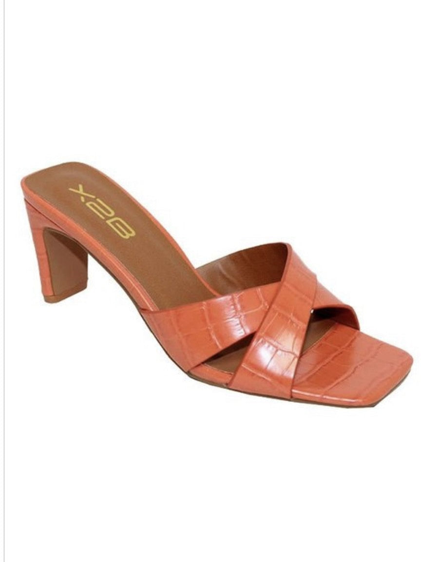 This croc embossed slide is in the most gorgeous salmon color. These fit true to size and are a heel you can comfortably wear all day long! Nothing more chic than a croc accessory.