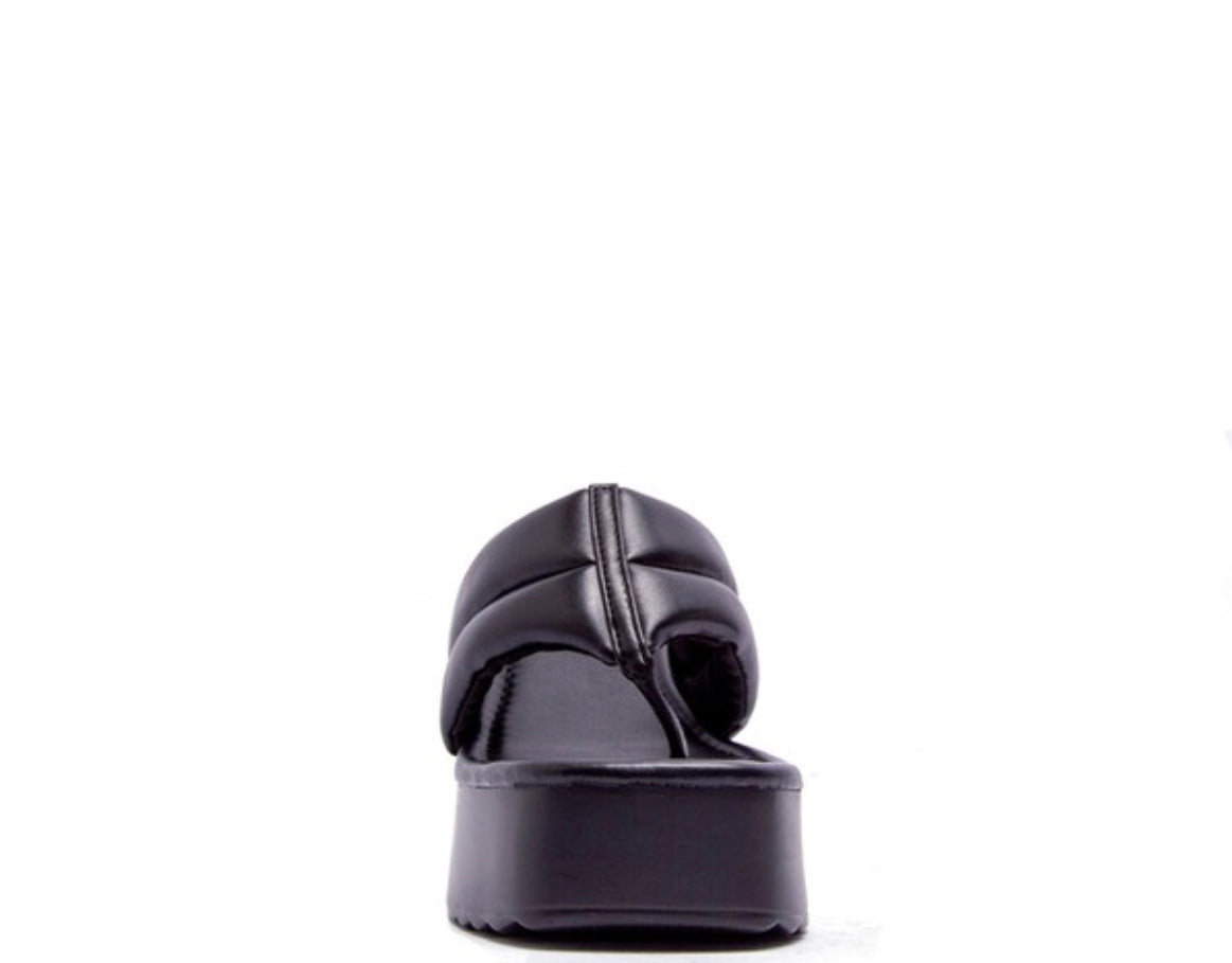 All the comfort of the Jackie sandal in a thong platform style. These fit true to size. If between sizes size up.