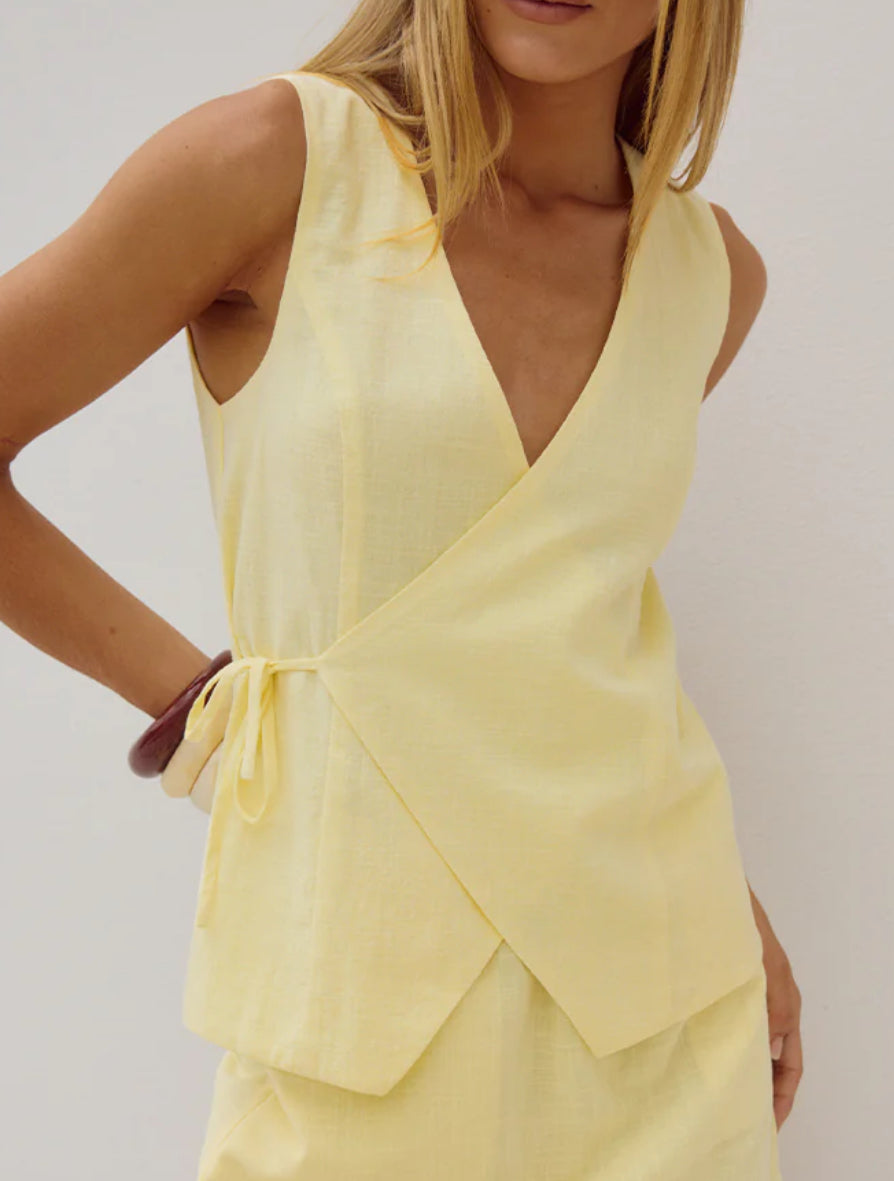 A simple and chic piece, our Limoni Vest has a wrap closure with a relaxed feel, perfect for summer, pair with our your fave jeans for the complete look. - Relaxed fit