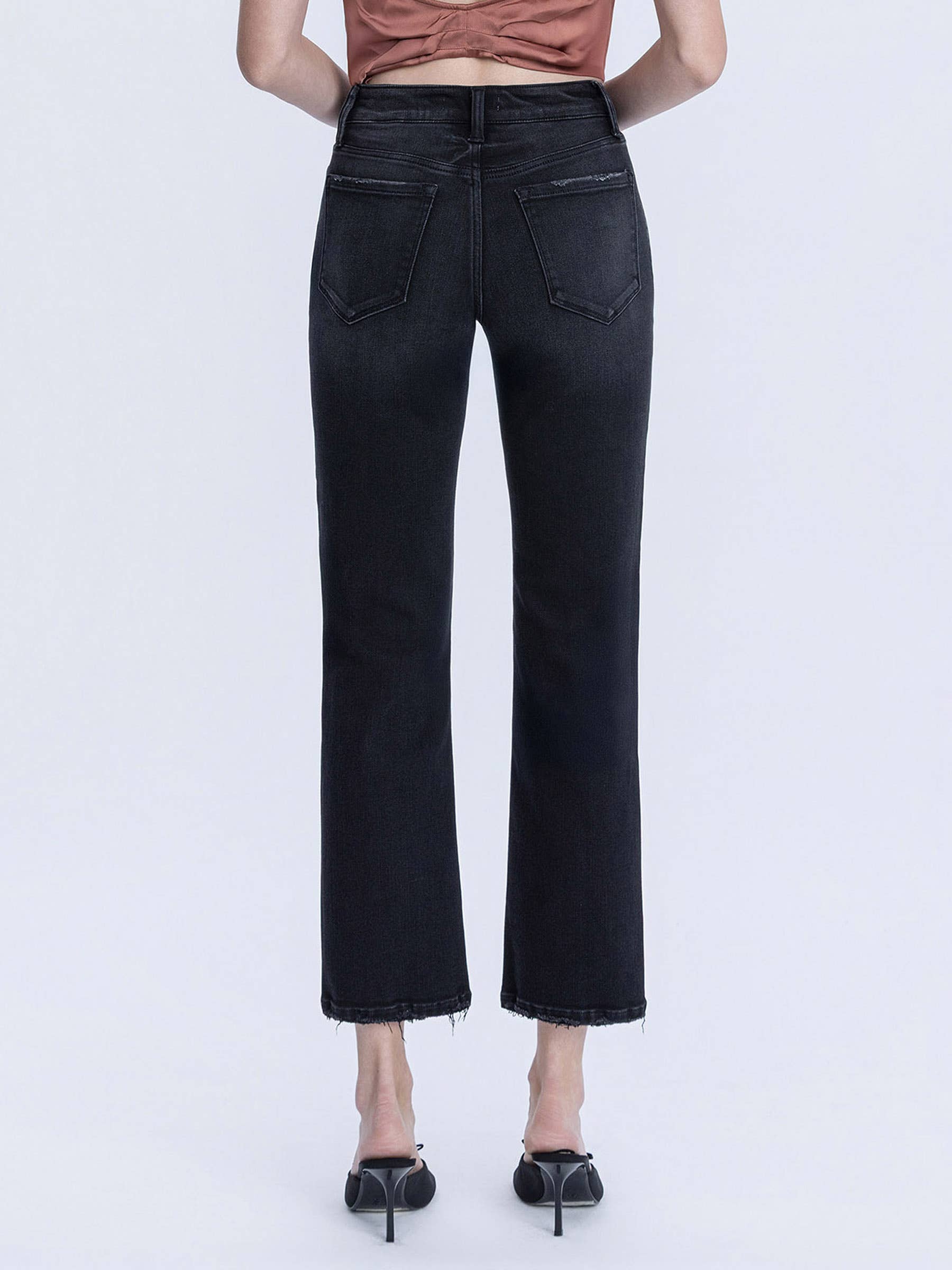 MID RISE BLACK ANKLE STRAIGHT JEANS
