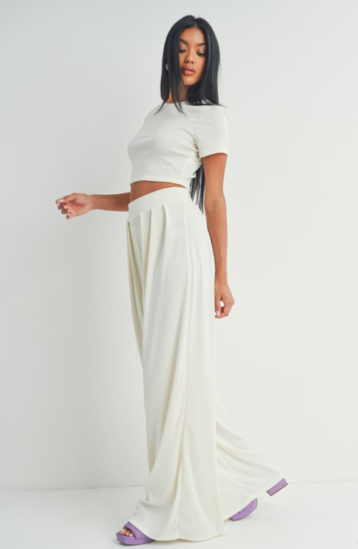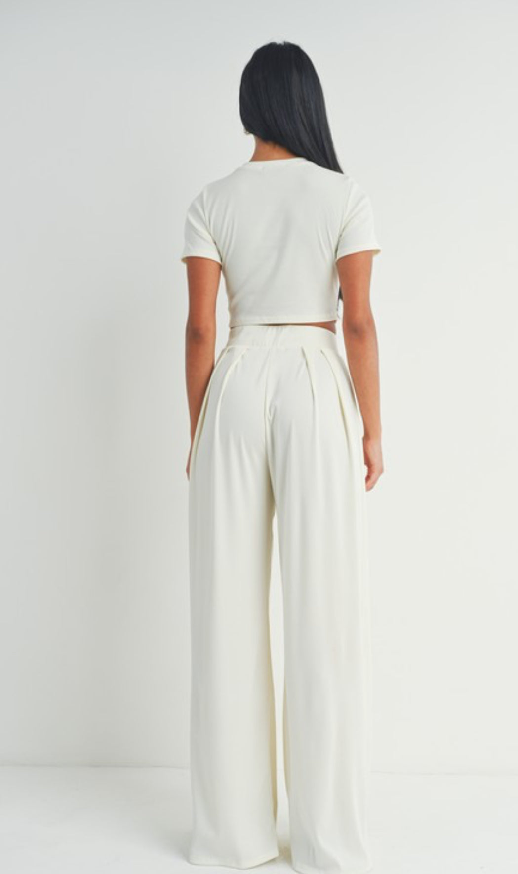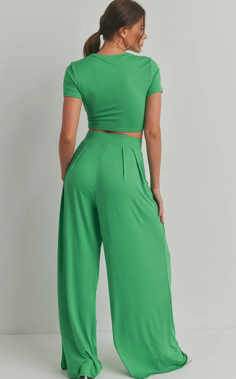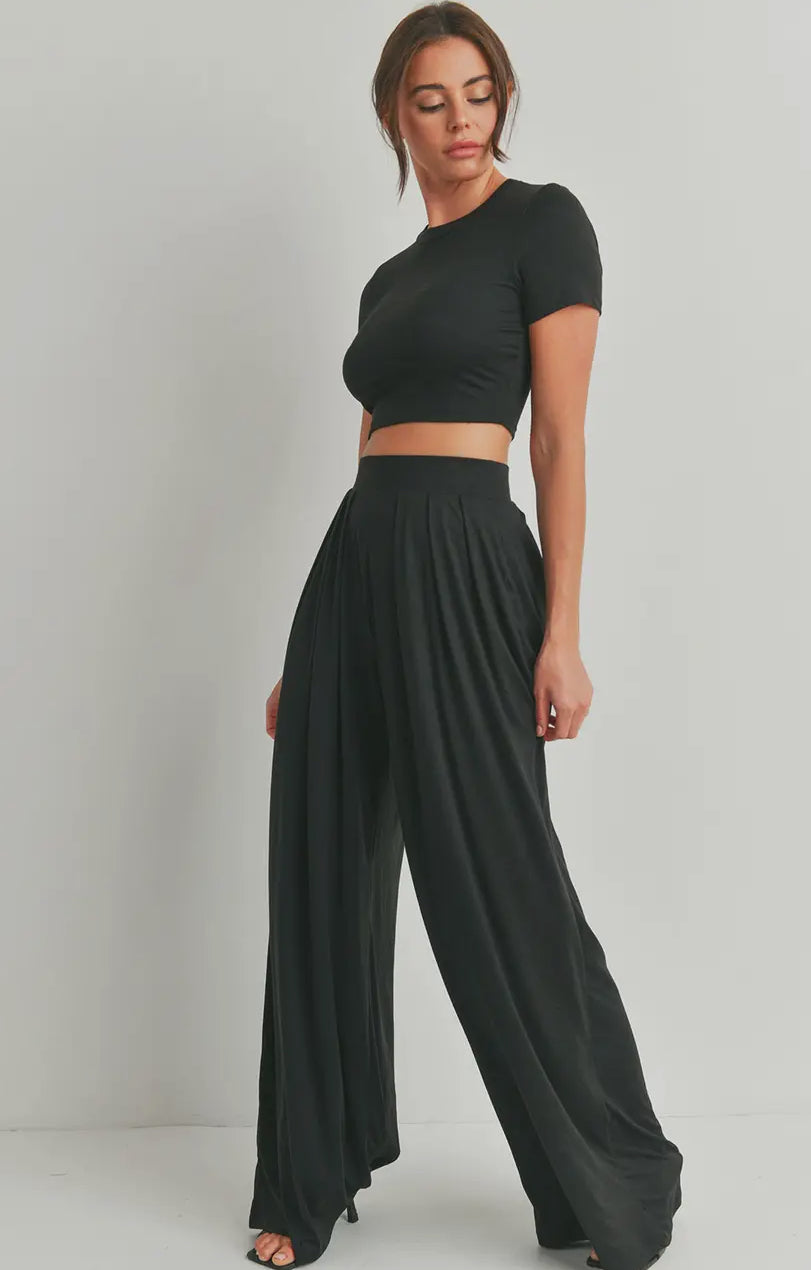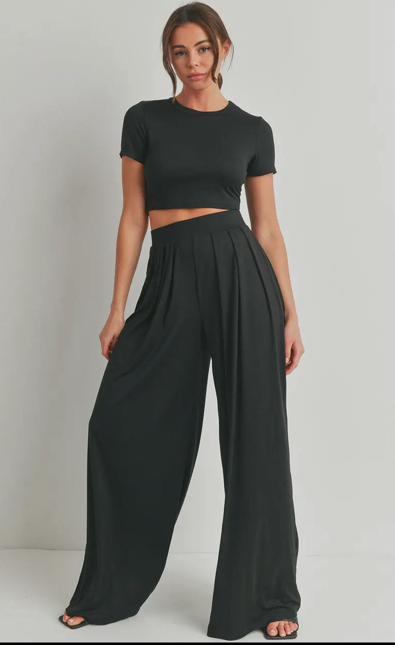 Palazzo pant me crop top set. Elastic waist, light weight and long bag 33’.5 inseam. Fits true to size.