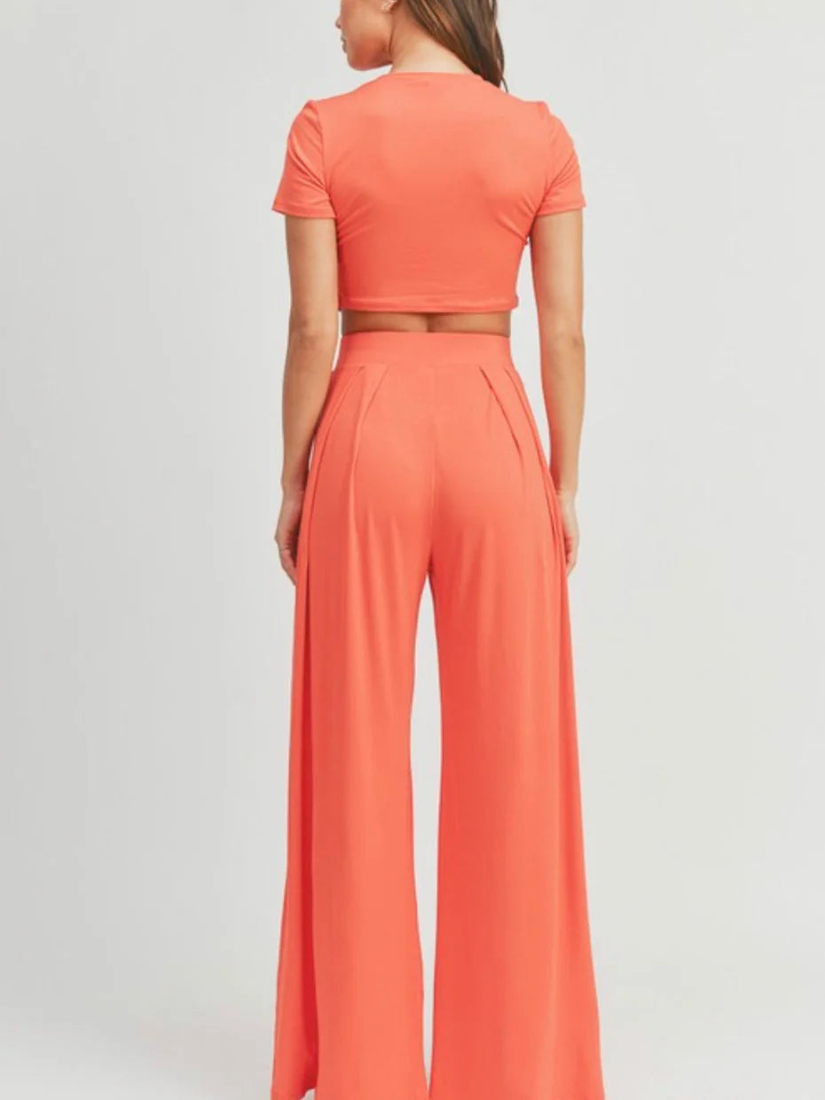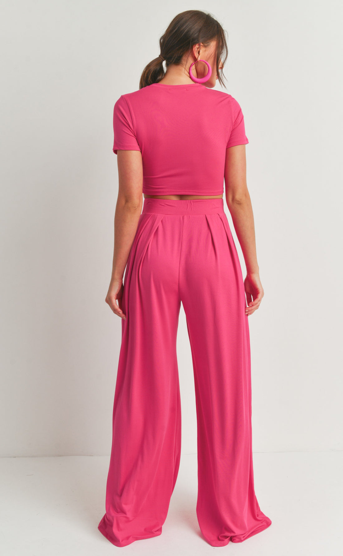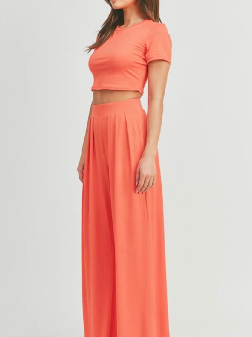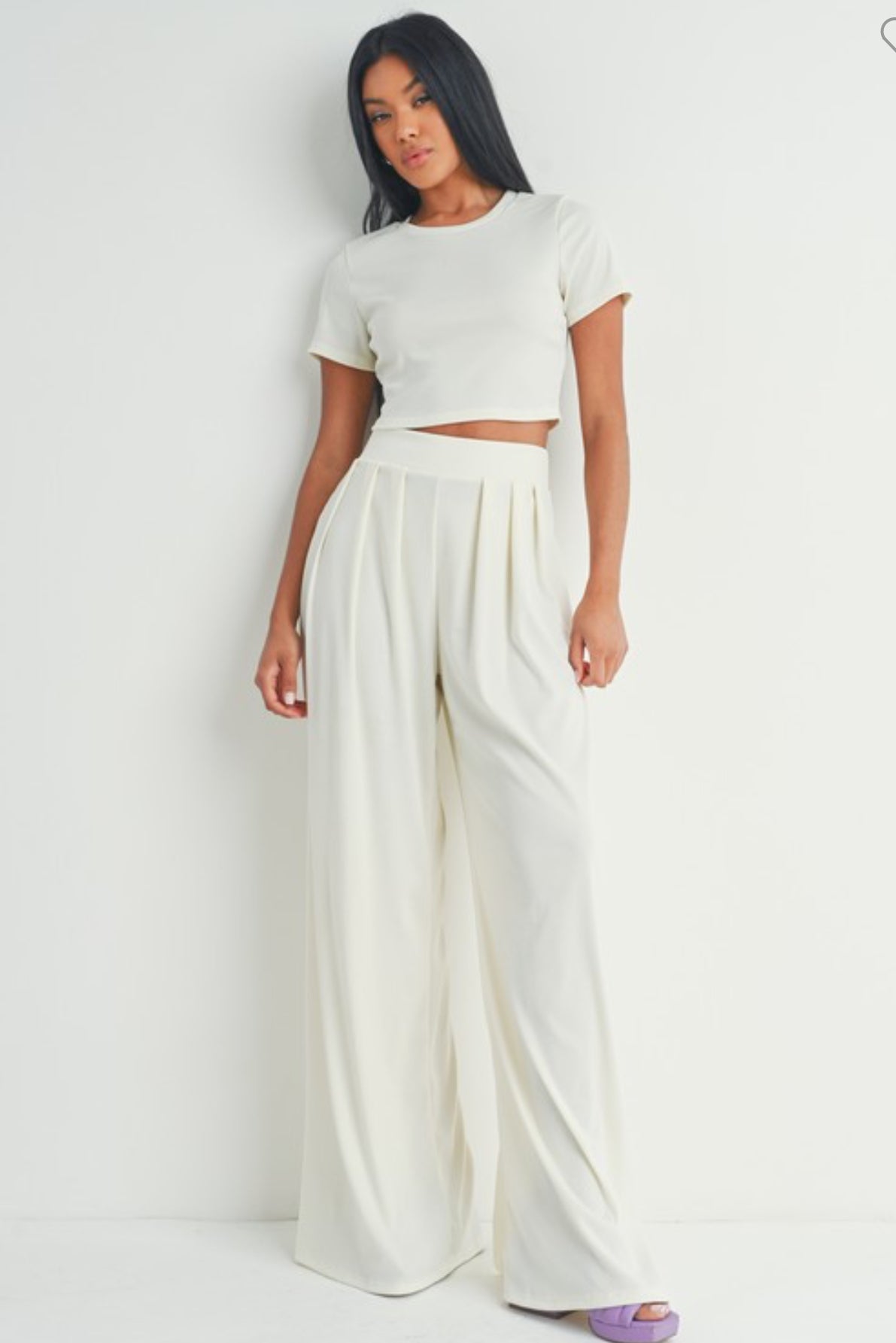 Palazzo pant me crop top set. Elastic waist, light weight and long bag 33’.5 inseam. Fits true to size.
