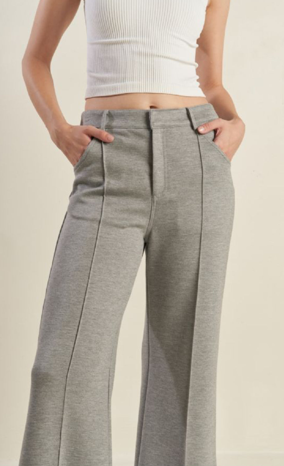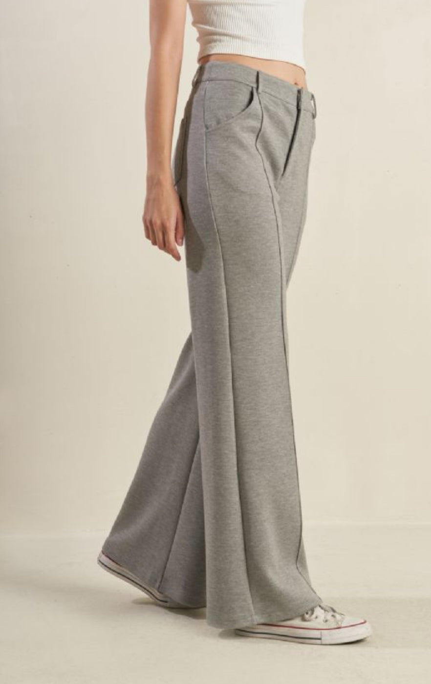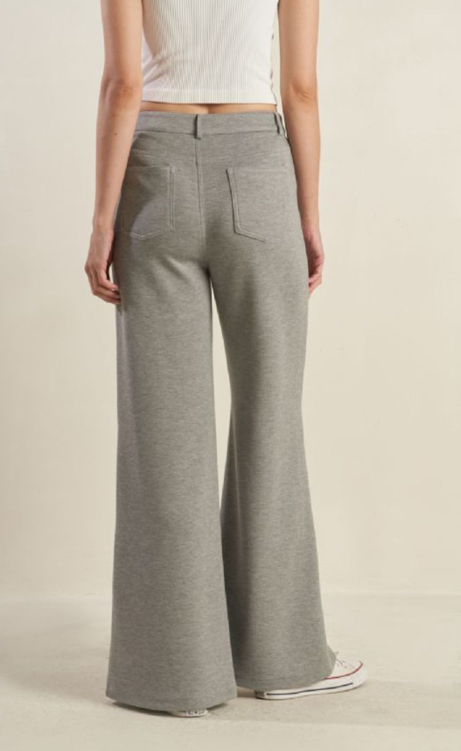 The comfort of your favorite joggers on dress pant form. A solid woven pant with front closure, pockets and flare leg.