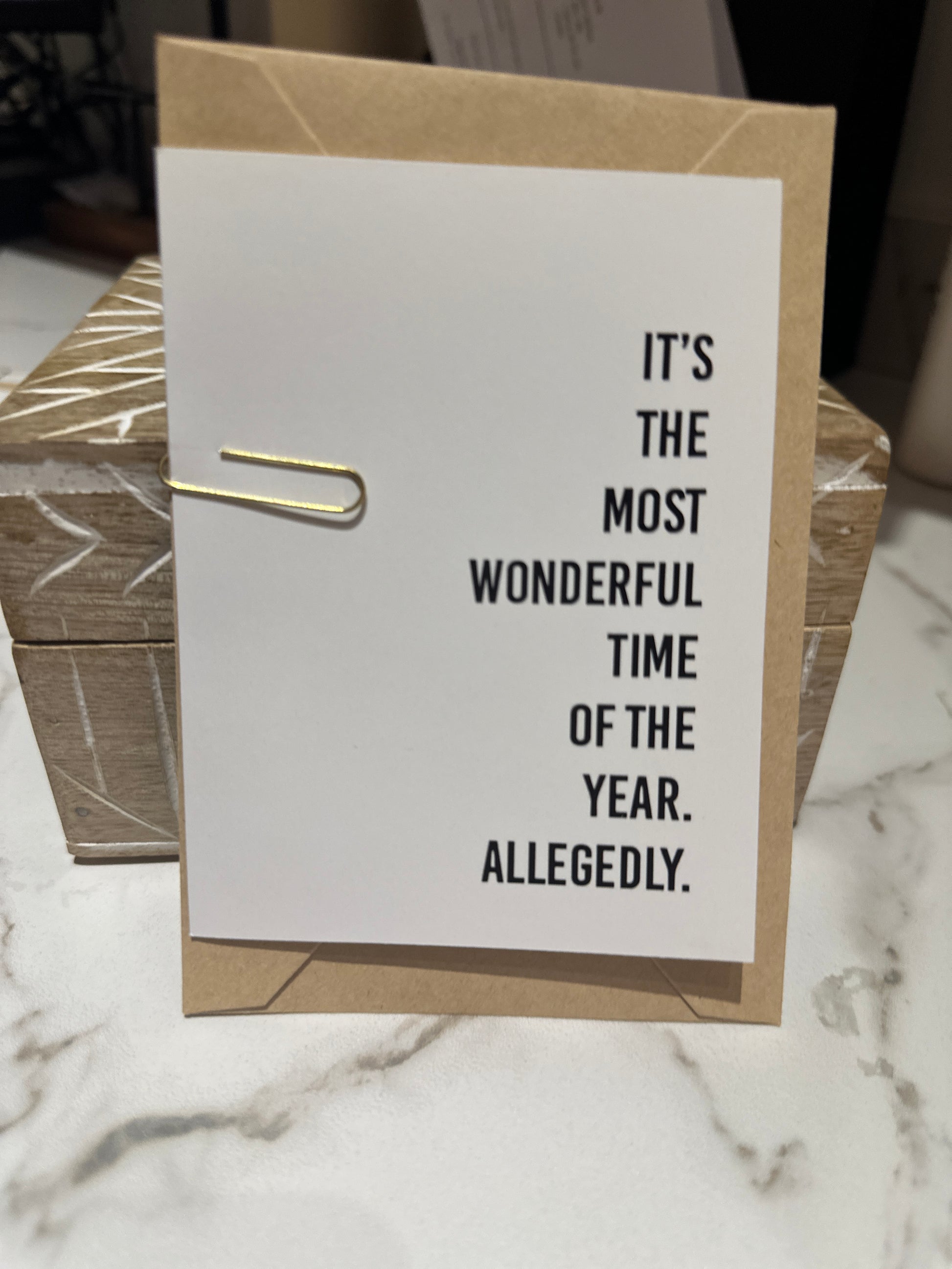 “It’s the most wonderful time of the year, allegedly.” Funny Christmas card.