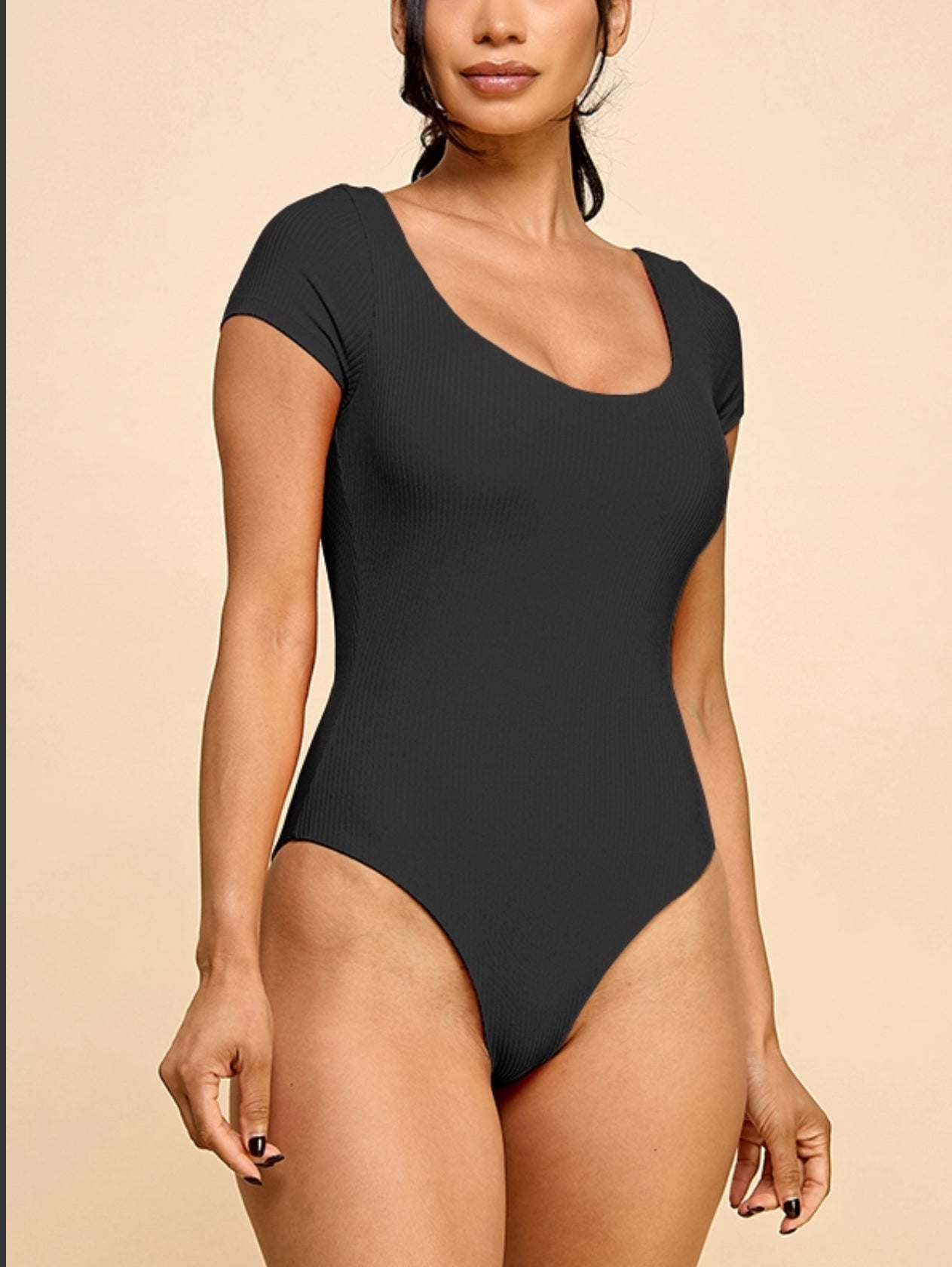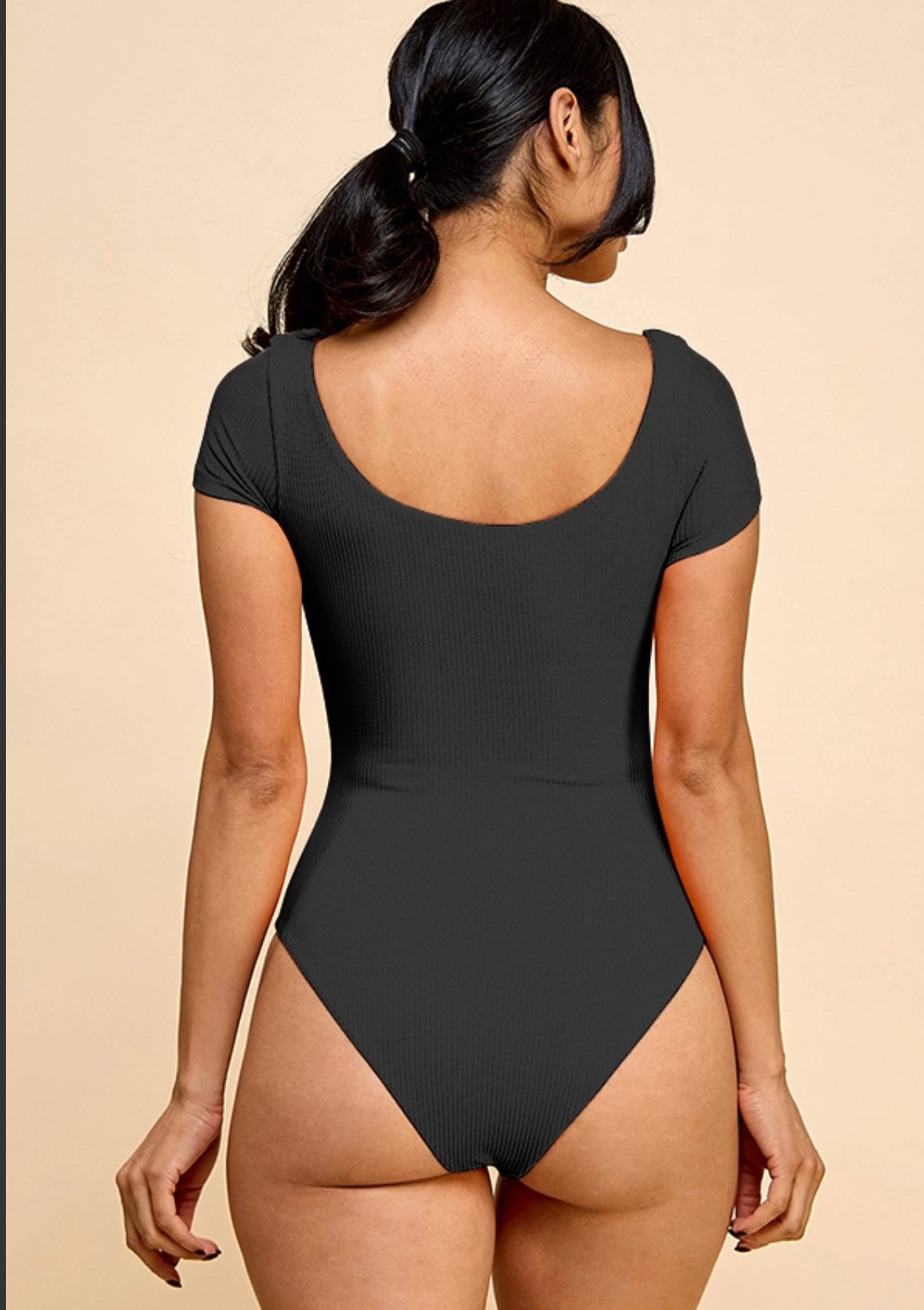 Double Scoop Short Sleeve 3X3 Rib Double Layered Bodysuit - Double Scoop - Short Sleeve - Ribbed - Double Layered - Bodysuit -