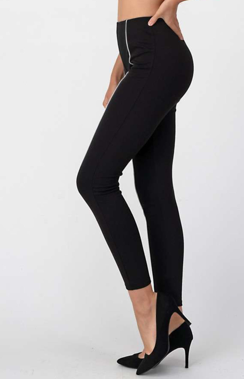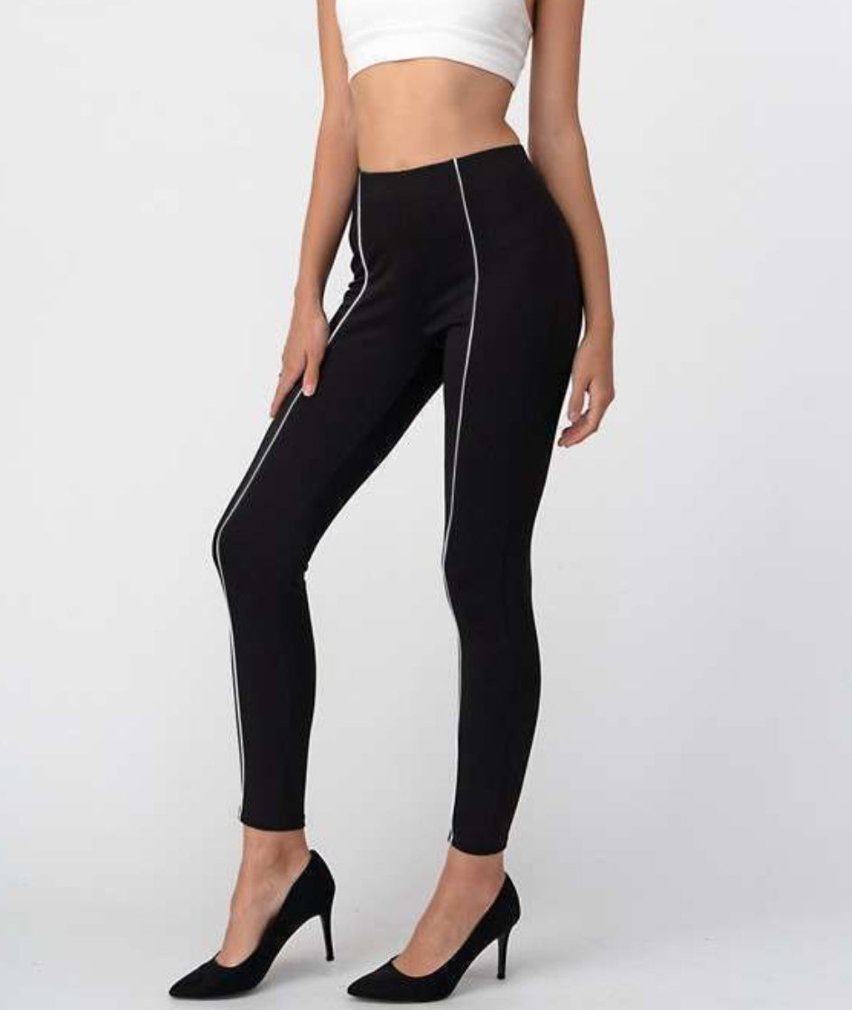 Ponte basic stretch leggings…Featuring Knit, Stretched, Skinny Fit, Full Length and casual style - High Waist - Code Detailing Front - Elastic Waist -