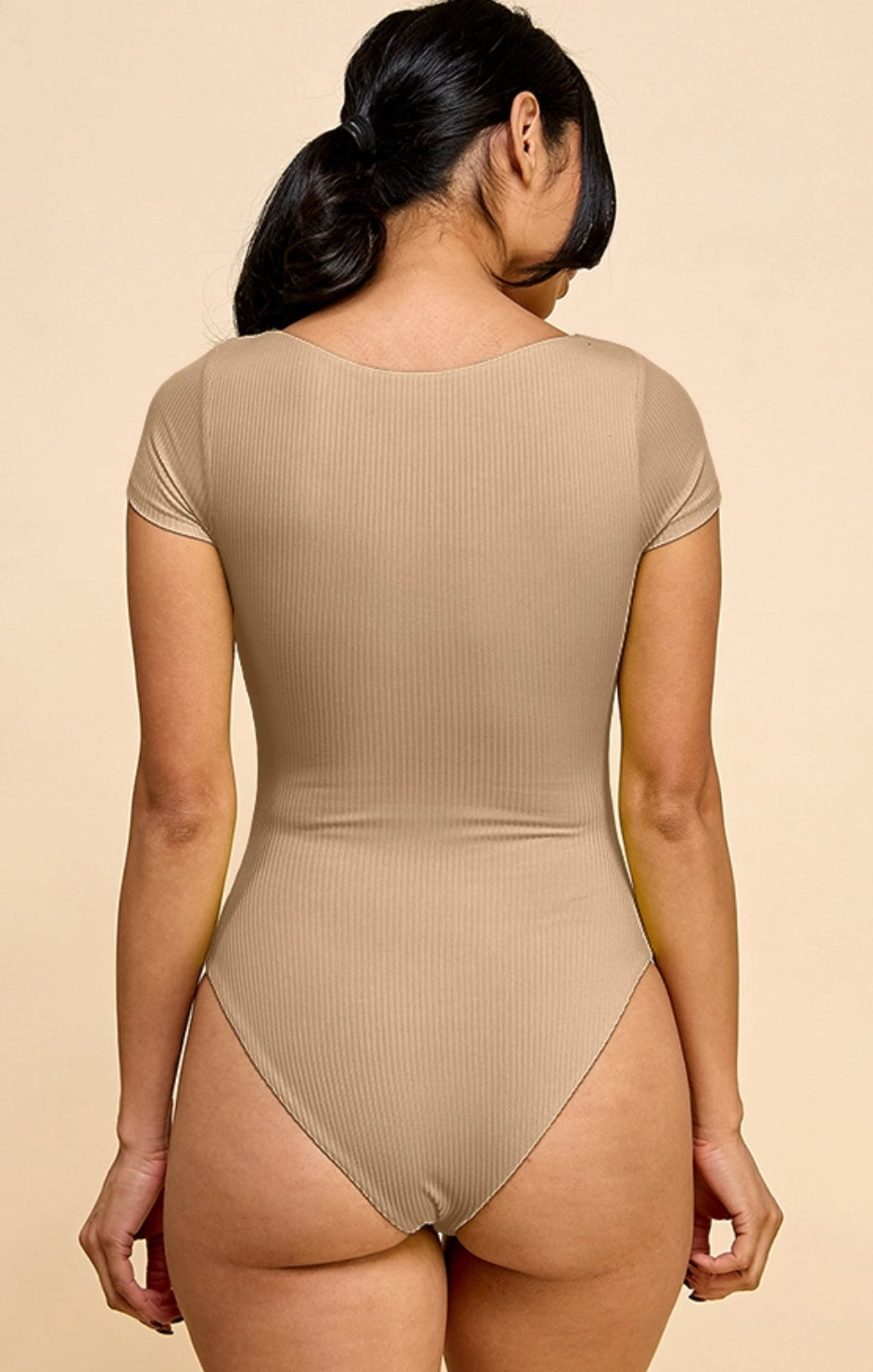 Square Neck Short Sleeve 3X3 Rib Double Layered Bodysuit - Square Neck - Short Sleeve - Ribbed - Double Layered - Bodysuit -