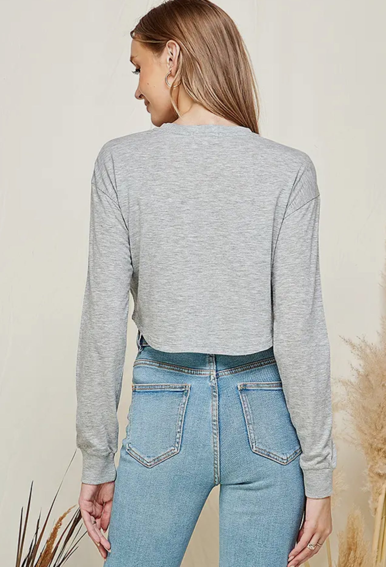 Crop Shoulder Slub Jersey Top - Crop - Shoulder Slub - Jersey - Solid - Round Neck - Long Sleeve - 60% Cotton, 40% Rayon