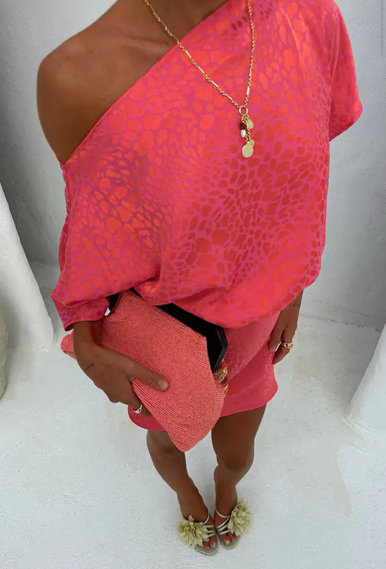You guys are loving our pink collection so we thought we'd add one more! Our best selling Tilly dress with a slightly relaxed silhouette and in a gorgeous leopard jacquard print, subtle enough for everyday wear but still adding that pop of NFD flare to your outfit. We've paired it with some heels and a clutch but feel free to add a range of accessories to really elevate the look!