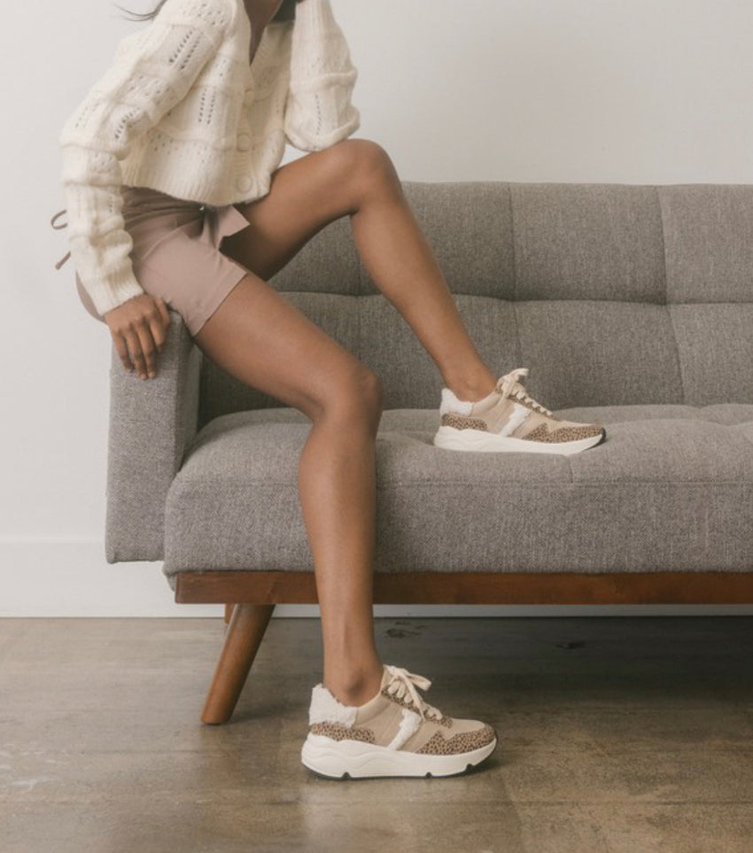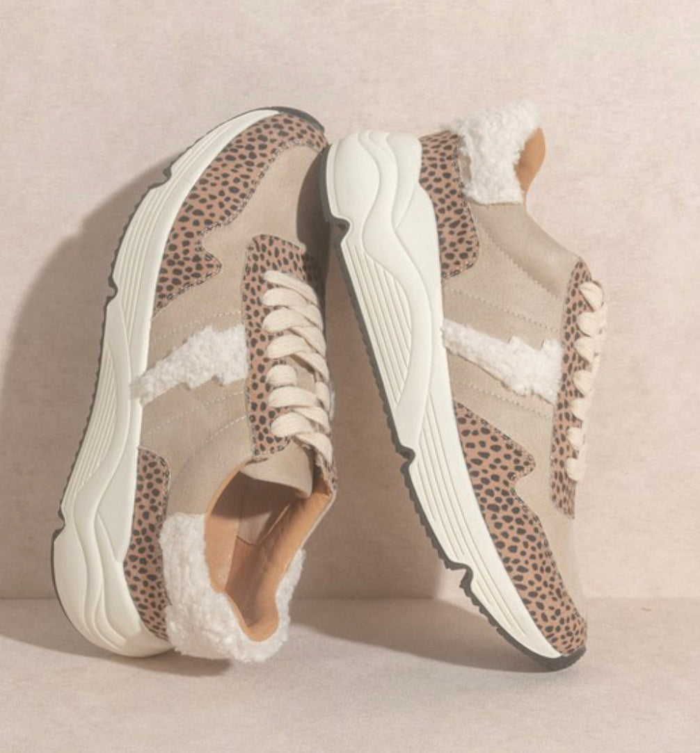 A subtle cheetah print with pops of Sherpa! Get on our feet!