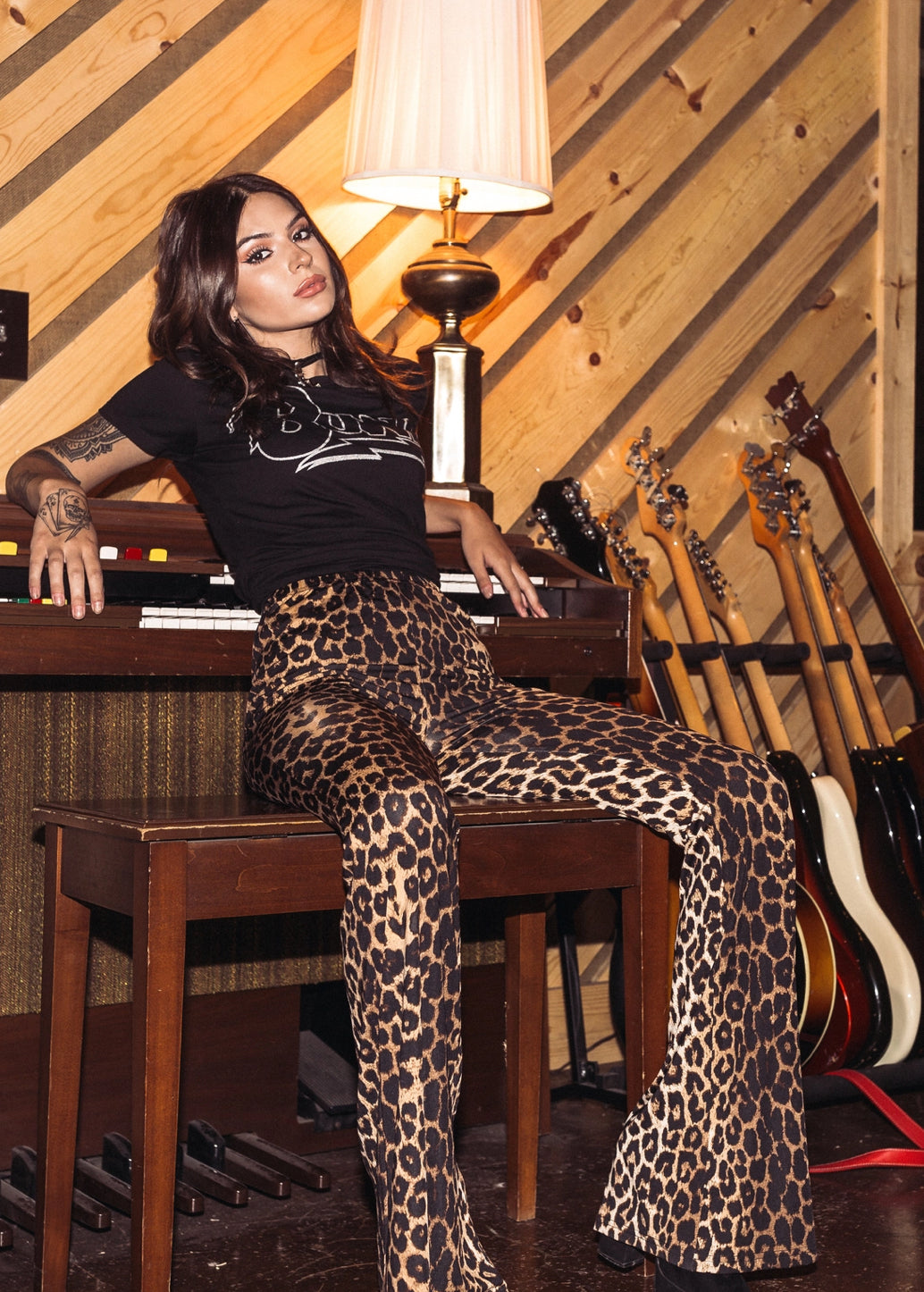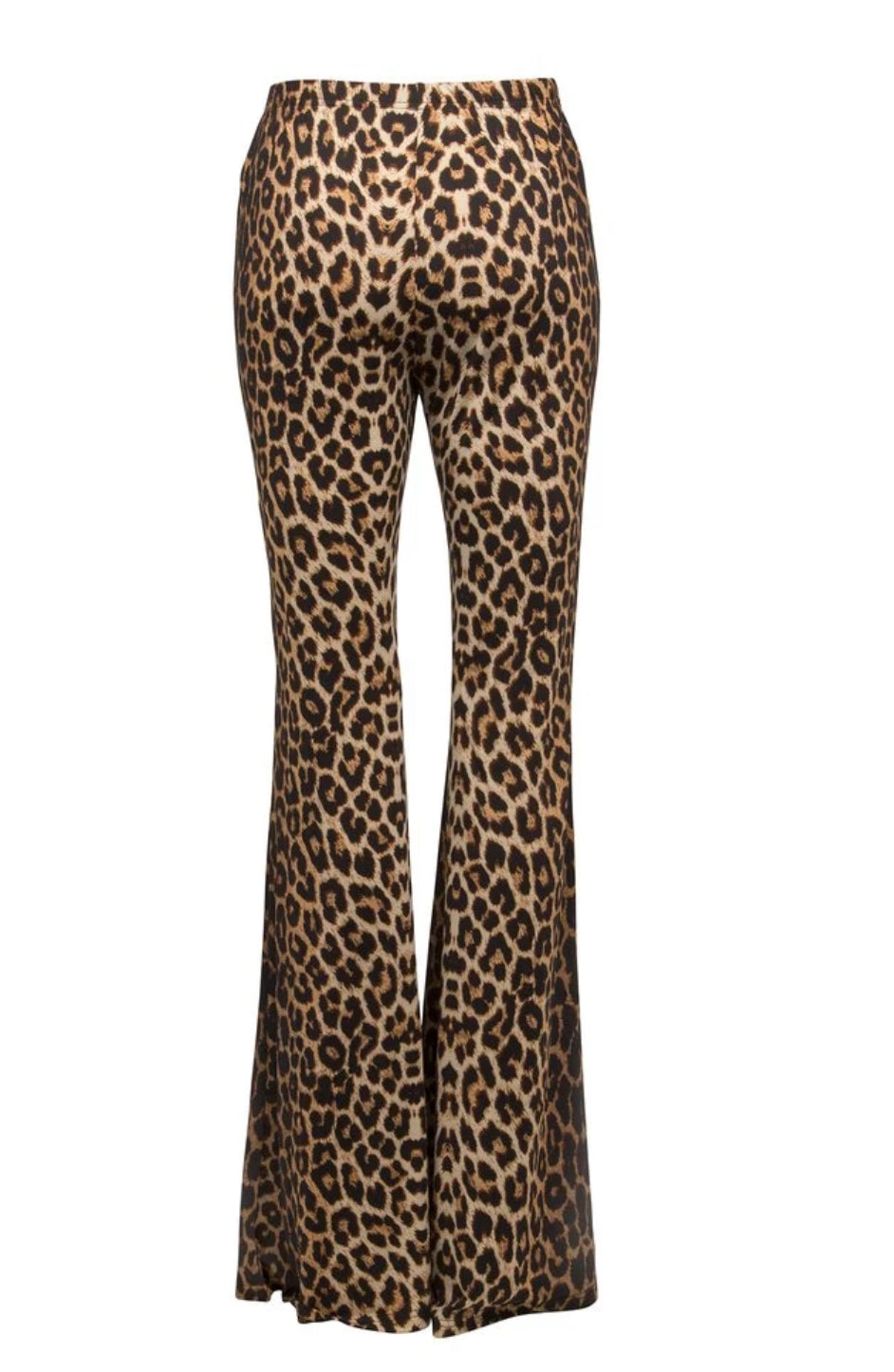 Bring out your wild side when you rock these rad flared trousers! The trousers are made out of a leopard patterned fabric that looks and feels fabulous. These trousers are slim fit from the hip through the knee that flares to a bell bottom leg. Pull-on stretch waist, soft and super stretchy… not a compression legging.