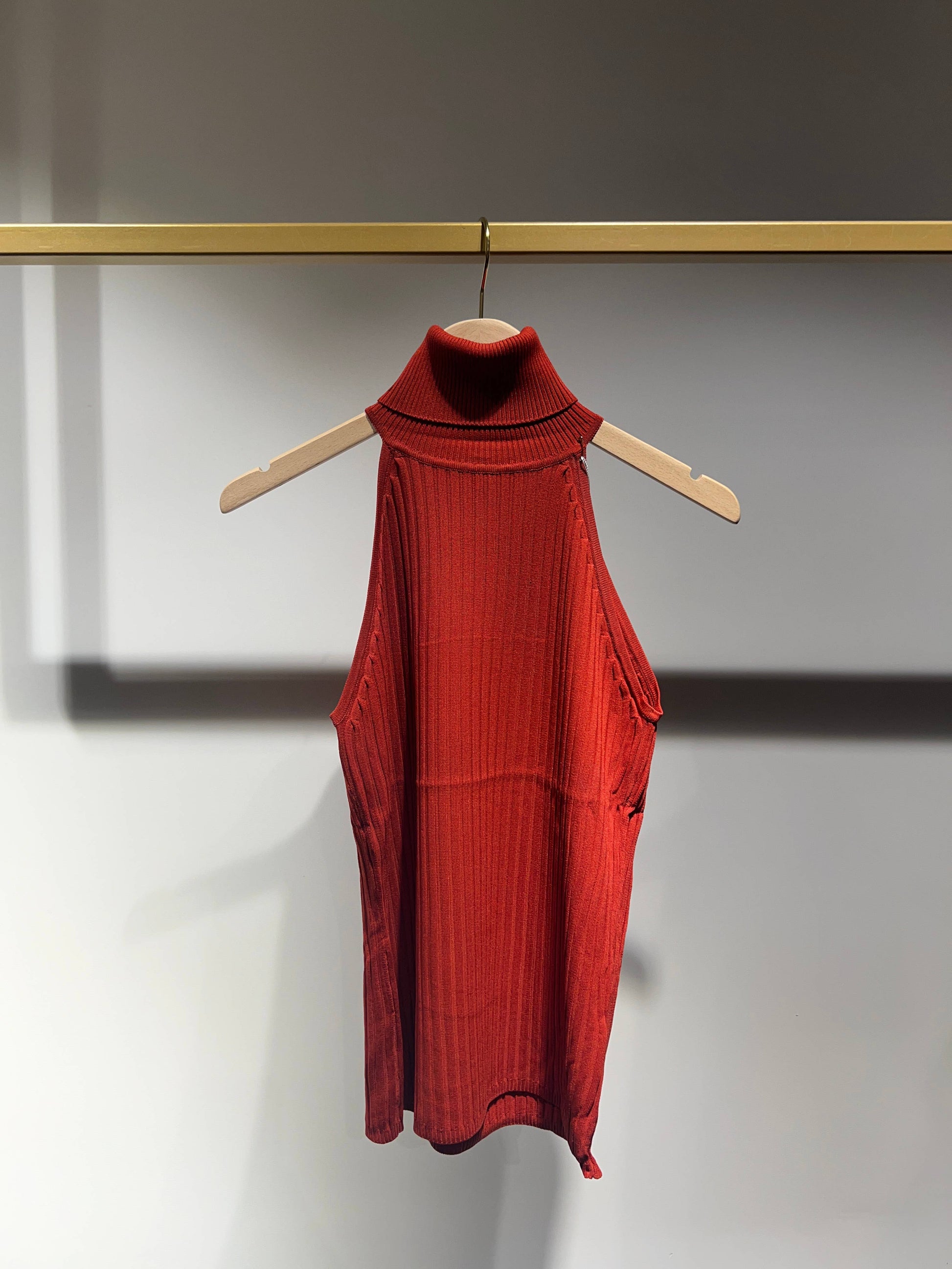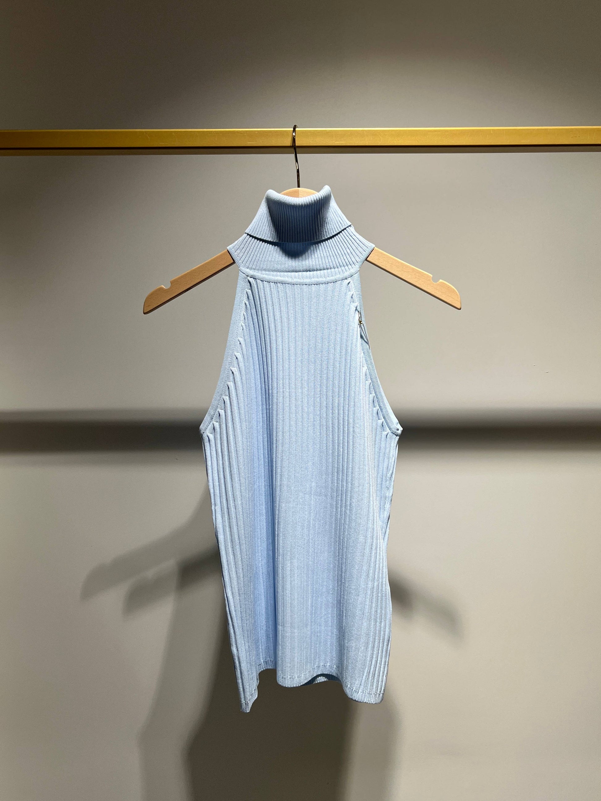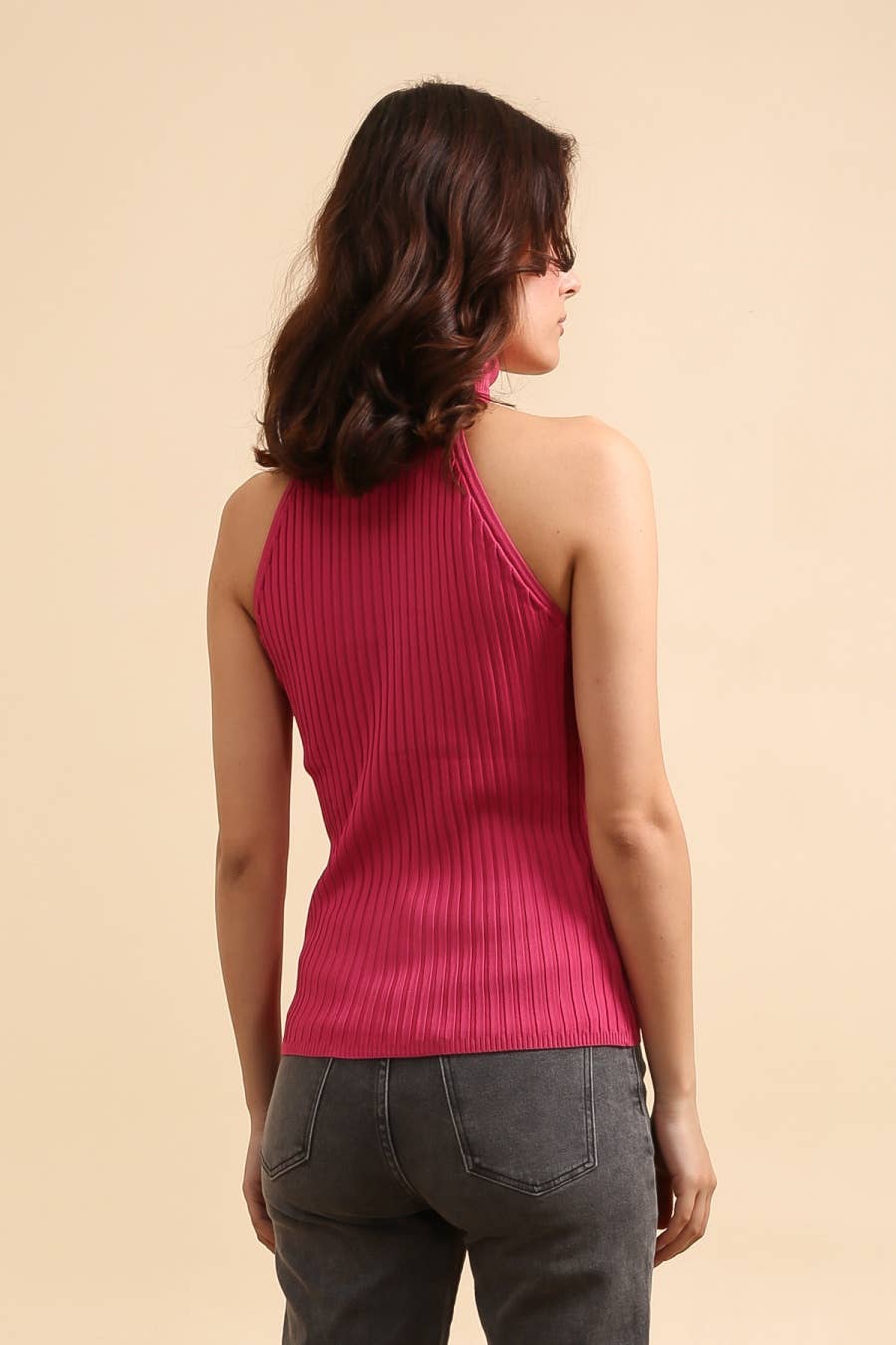 Ribbed knit turtleneck top, sleeveless, soft and super stretchy, one size fits most.