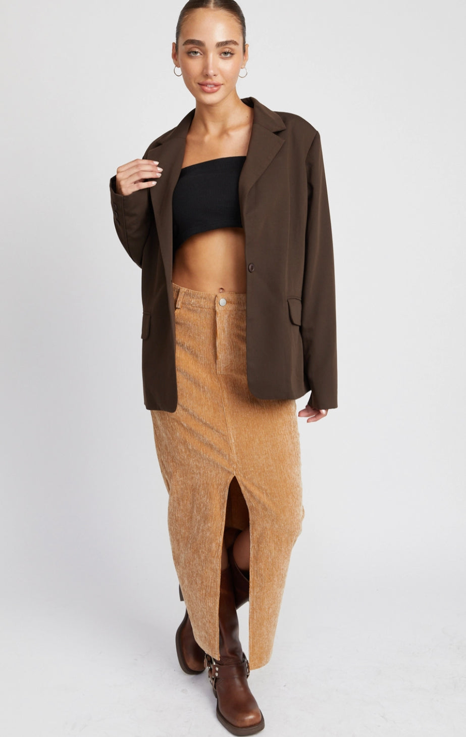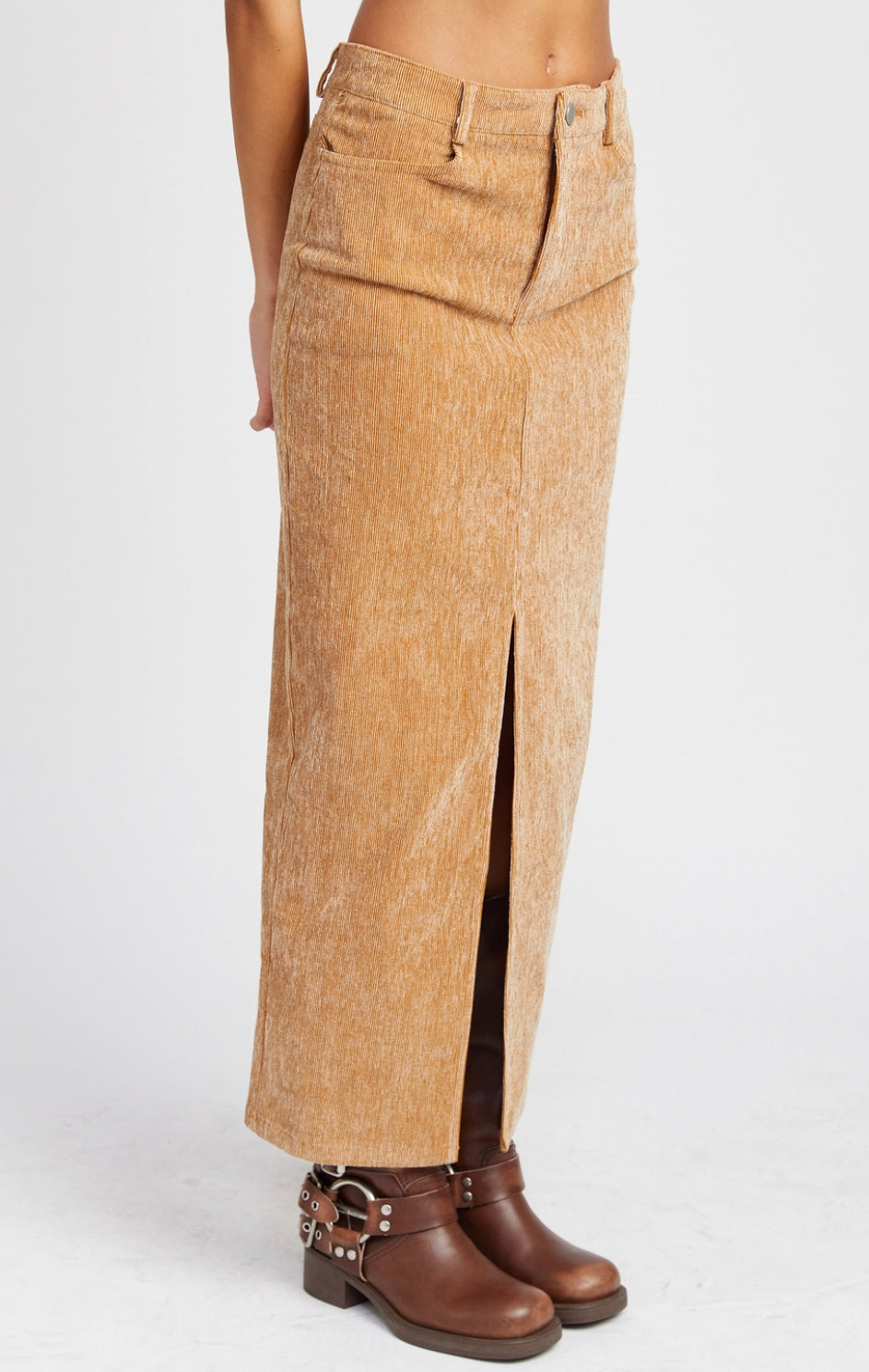 The perfect fall skirt. Soft corduroy in this column skirt with button fly, pockets and comfort stretch.
