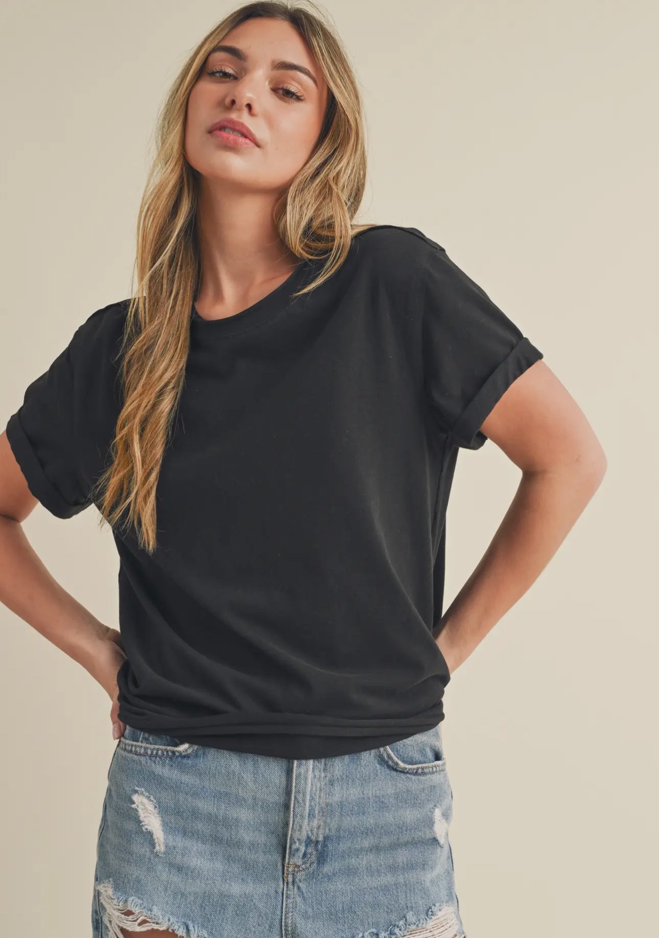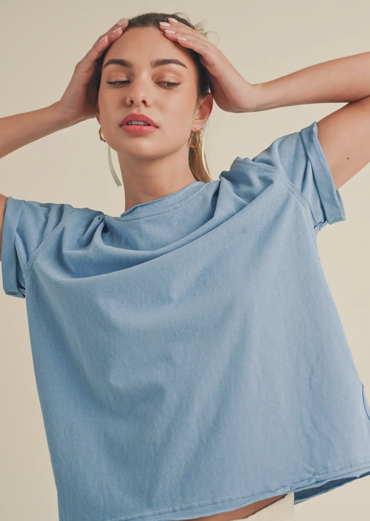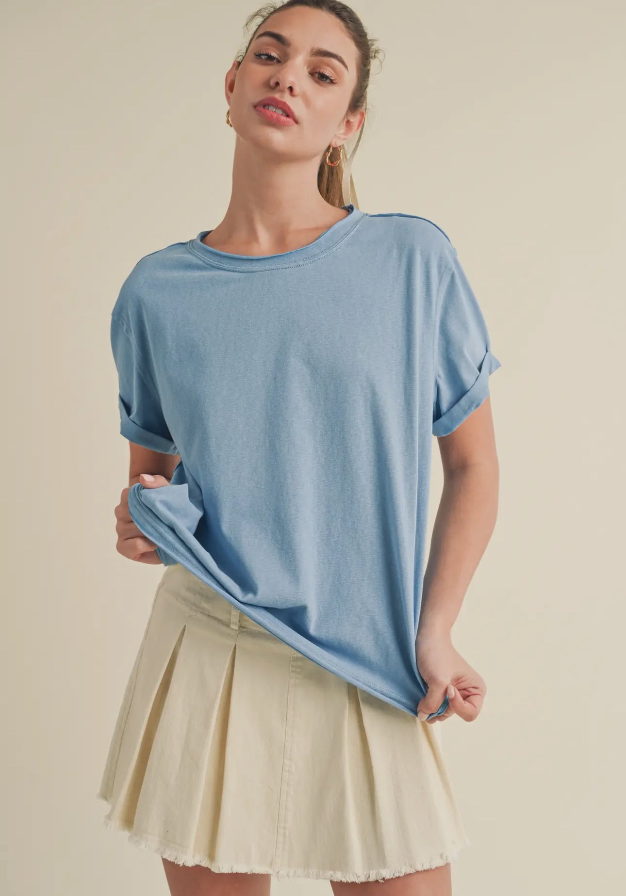 A classic summer tee with crew neck, rolled sleeves, reversed seamers and classic tee fit.
