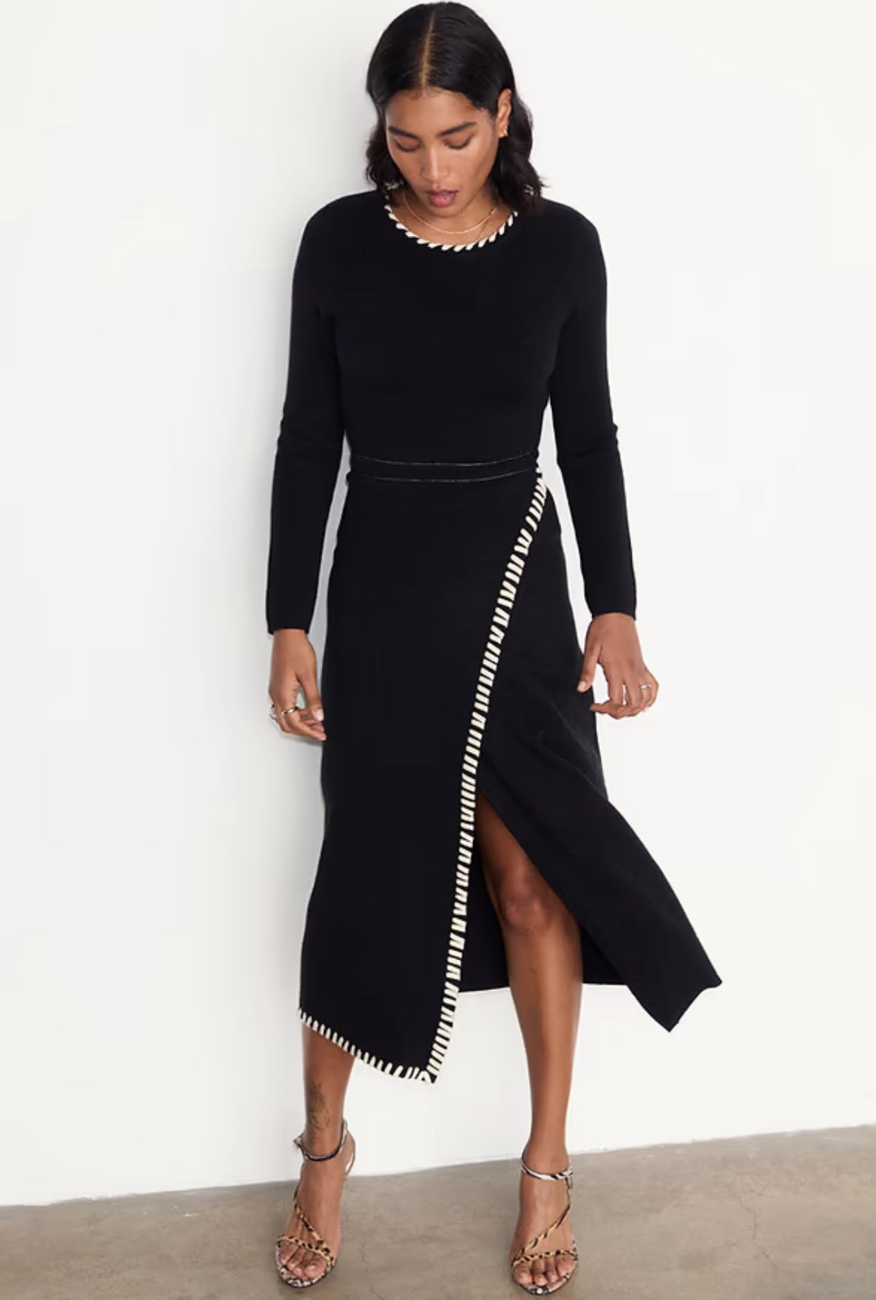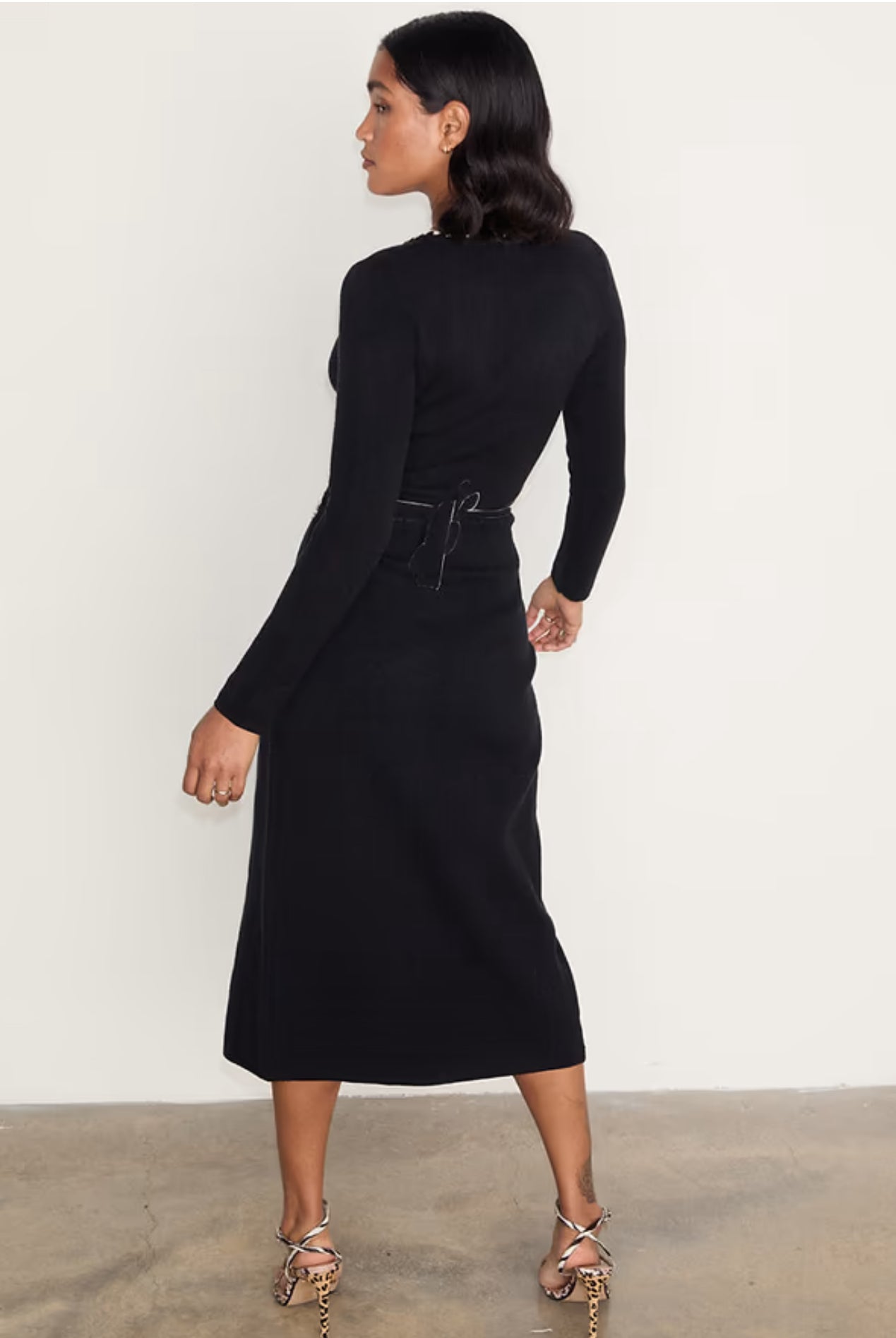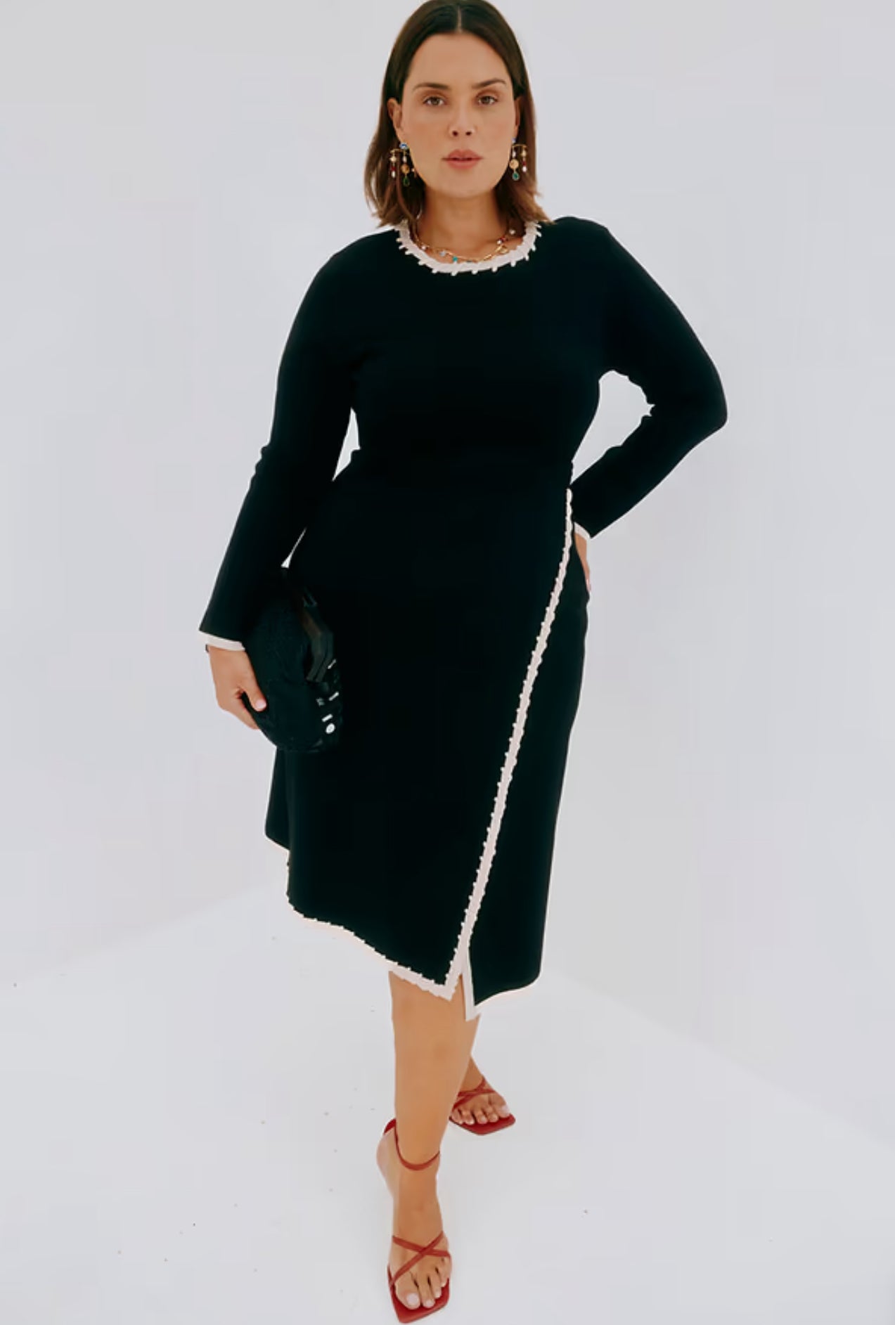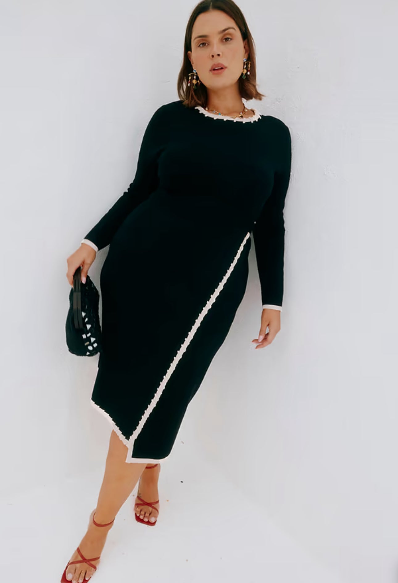 A heavy, luxe feel knit dress that's perfect for the slightly chillier autumn months. With contrast loop detailing along the neckline and side hems that add a touch of texture to the otherwise simple outfit. A wrap tie fastening for adjustable coverage that cinches in the waist and defines your curves for a more streamline silhouette.