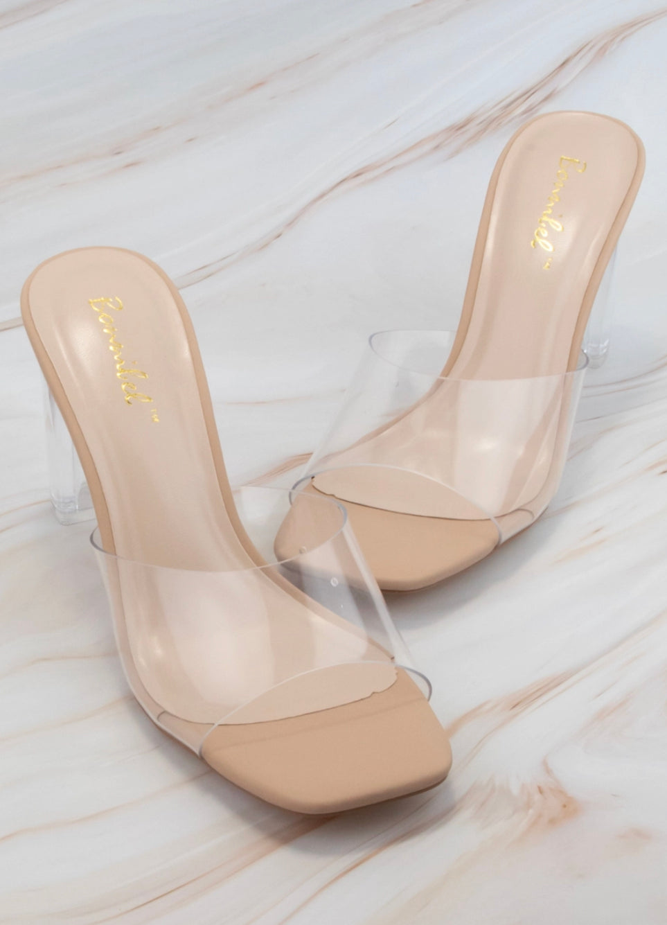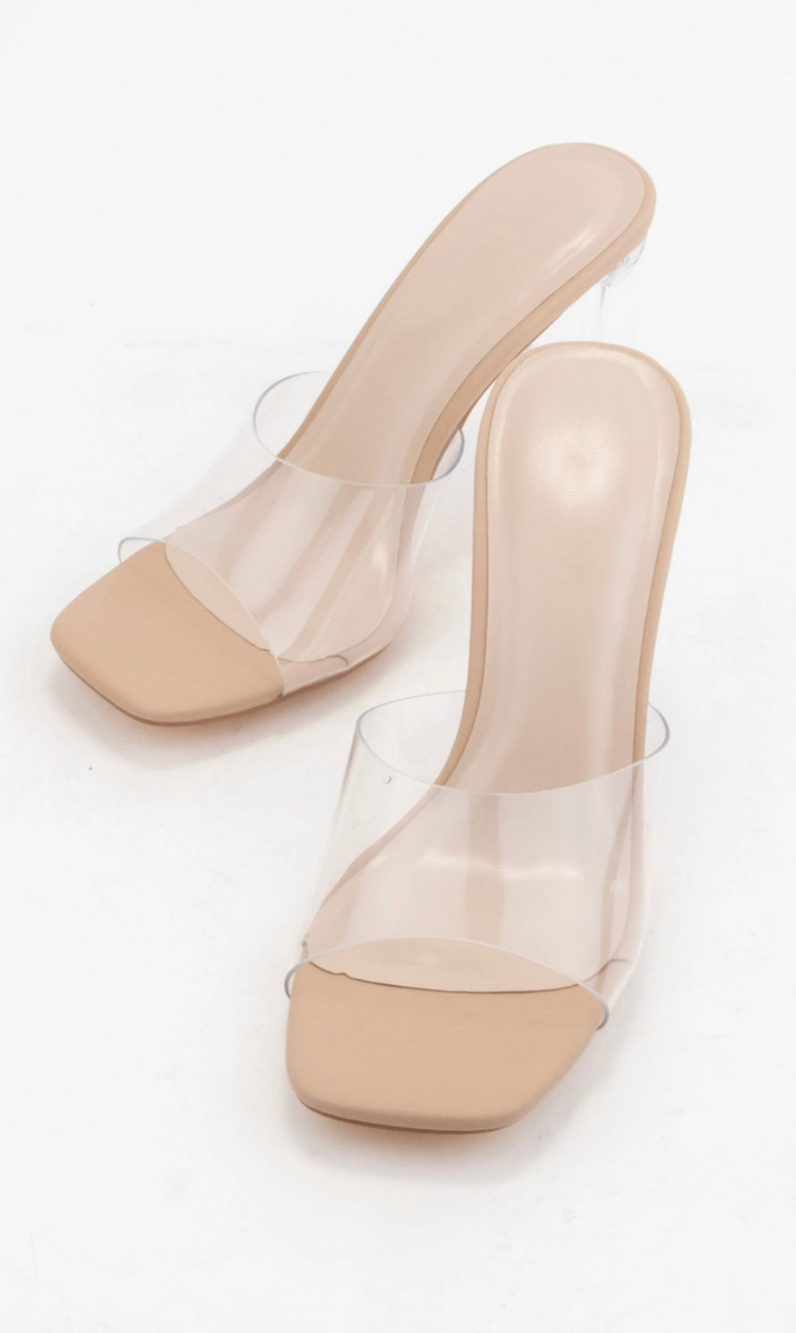 Clear lucite 2” block heel .. perfect truly nude shoe when you want your legs to be the star!