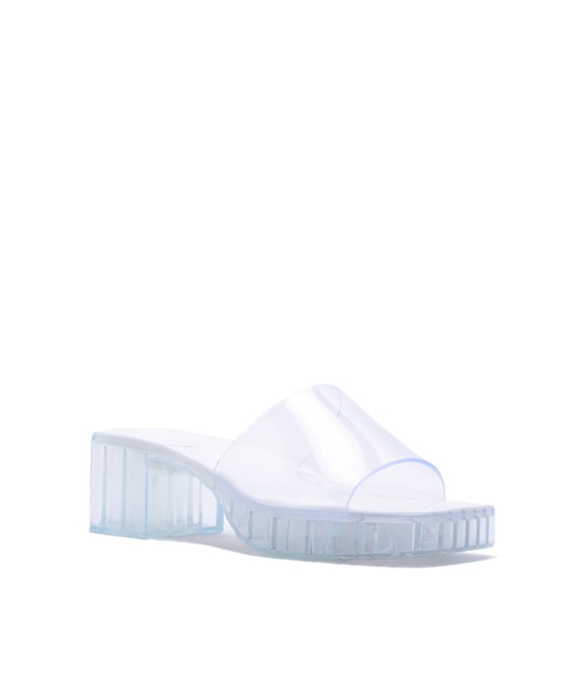 A more casual take on the lucite shoe trend with that throw back 90’s feel. This fit true to size but if between sizes we recommend sizing up,