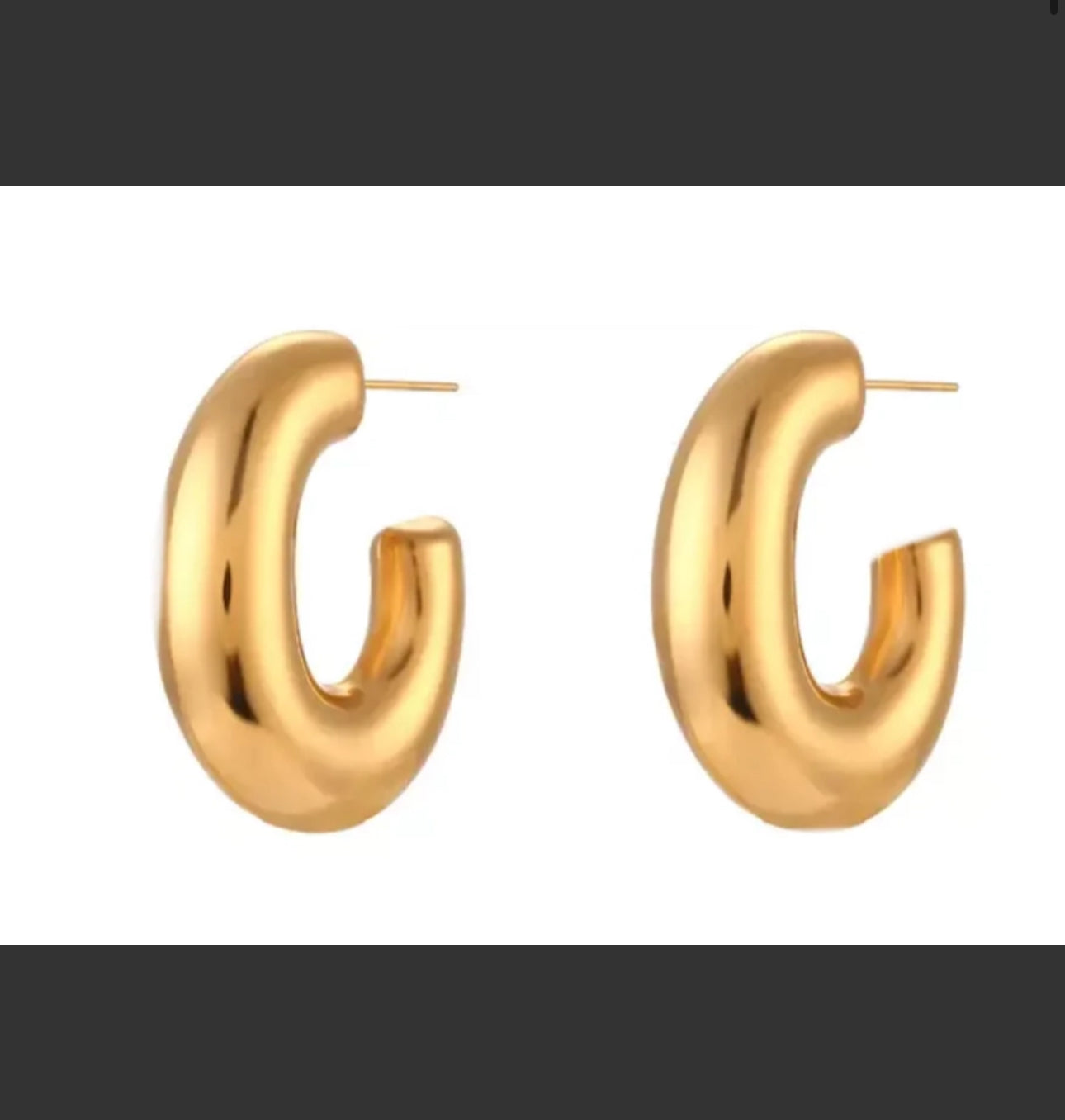 The best selling Puffy Iconic medium hoop is our medium sized light weight high shine Puffy earring hoop. This is a big statement but not so oversized to look trendy. We love this it is made of stainless steel that is hallowed out for weight. Well balanced Earring. Ultra high shine PVD plated making it waterproof, Hypoallergenic and very long lasting