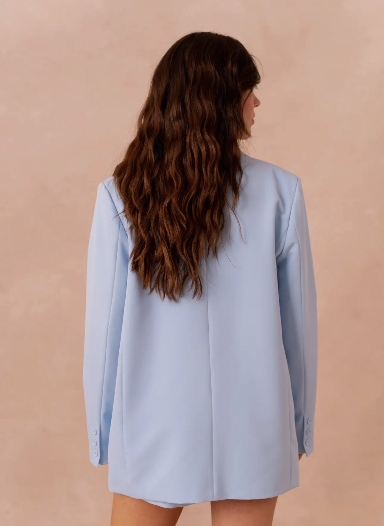 Elevate your wardrobe with the understated elegance of Parisian tailoring. This powder blue blazer is a fresh, modern interpretation of a timeless classic, designed to blend effortless sophistication with contemporary style.