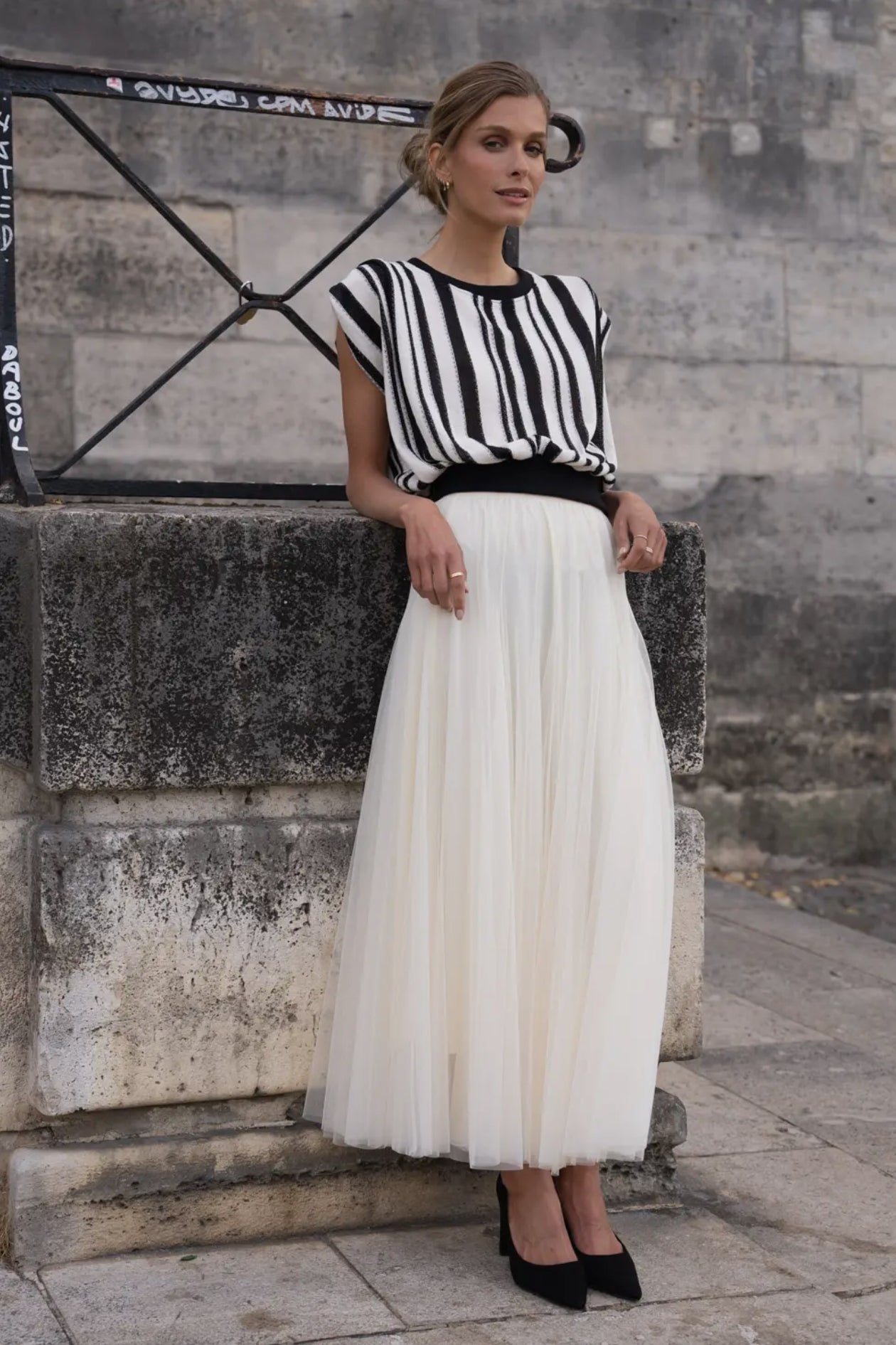 Long tulle skirt for a close-fitting effect: - two layers of tulle superimposed - inner lining - thin elastic waistband- maximum glamour: