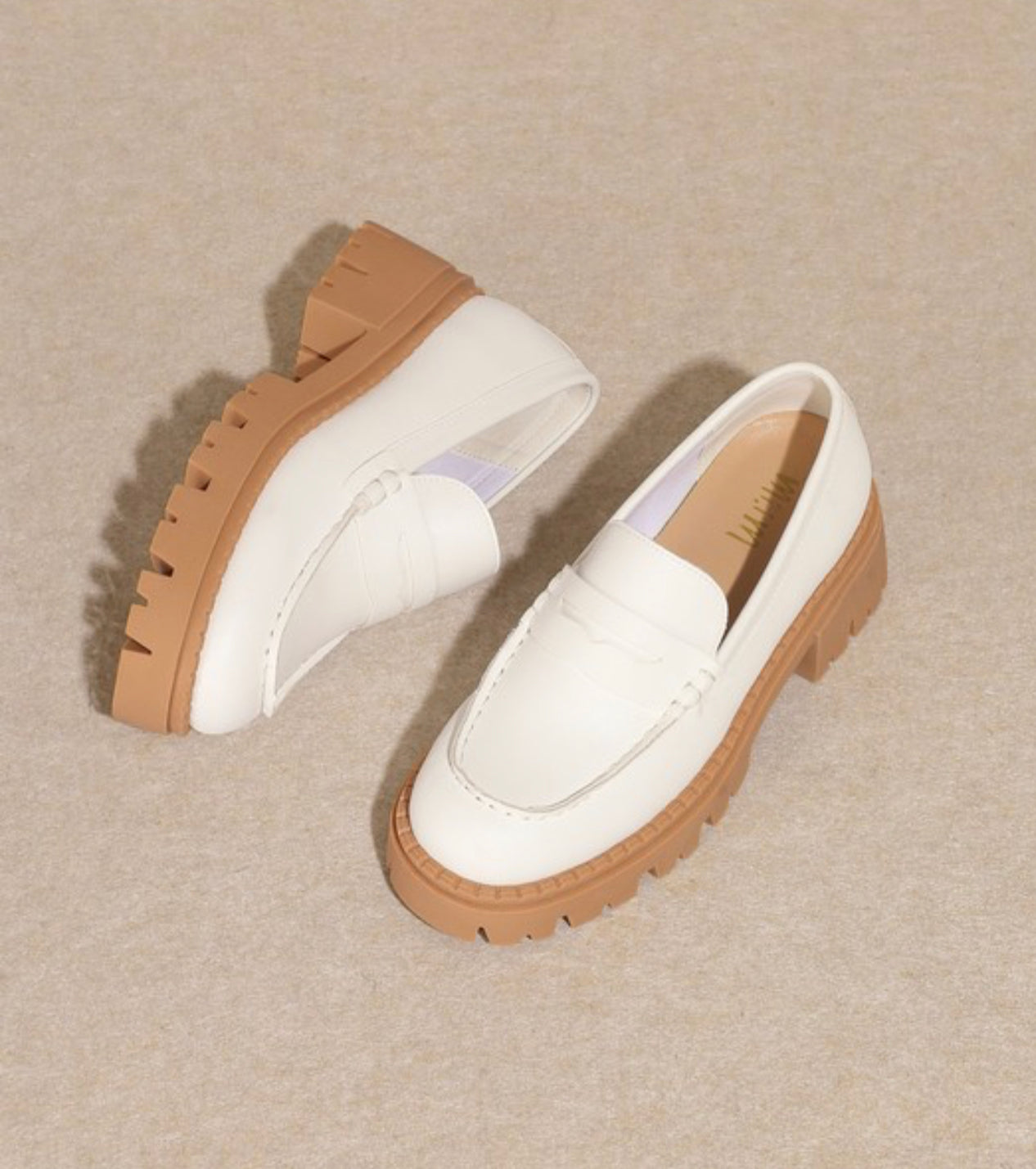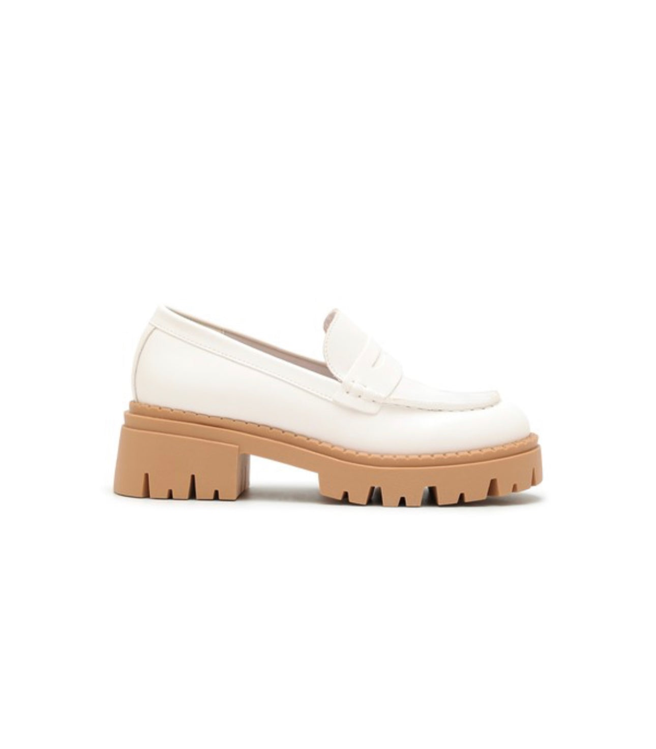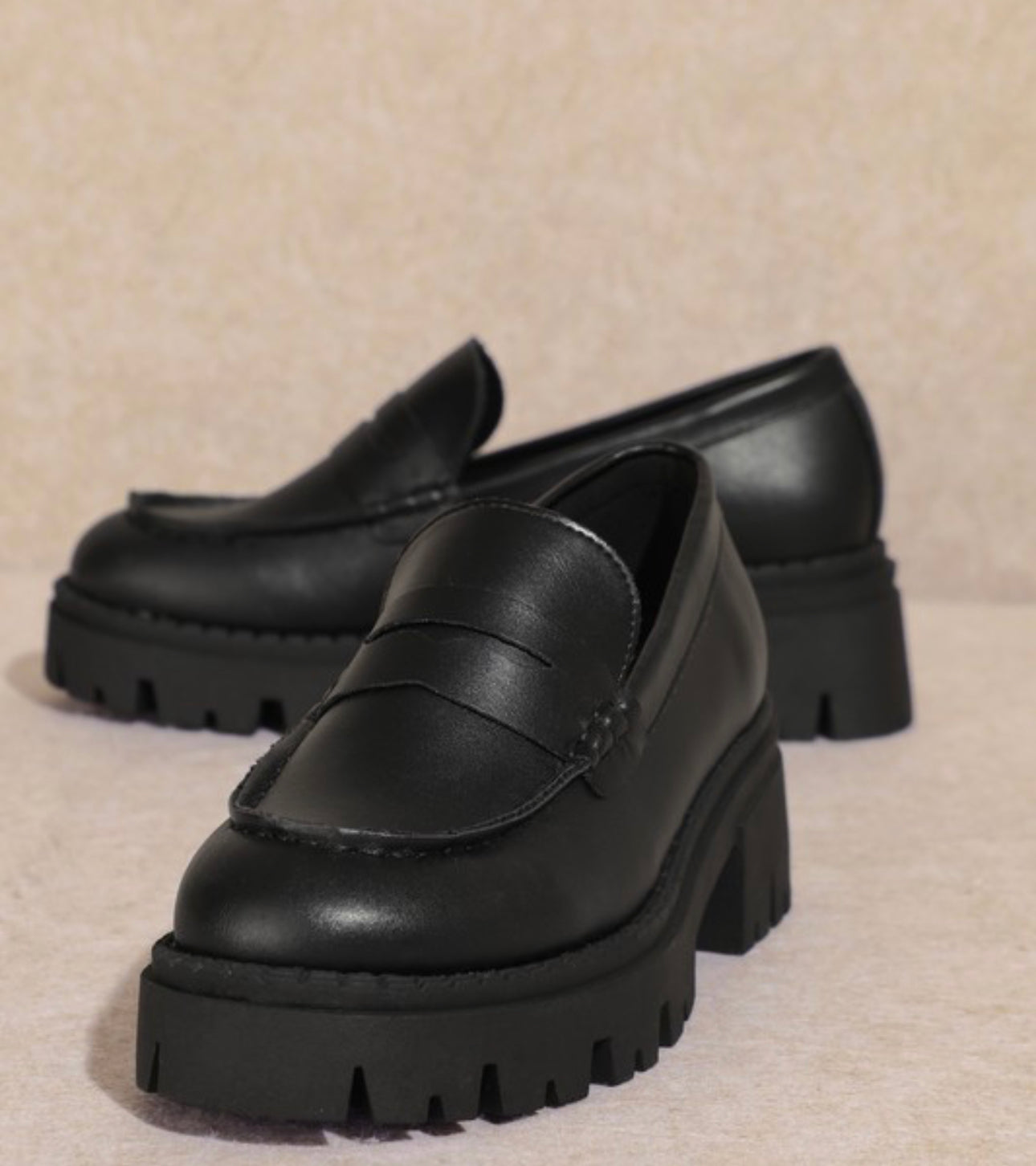 Lug sole classic black vegan leather loafer. The fall must have shoe for added height while maintaining comfort,