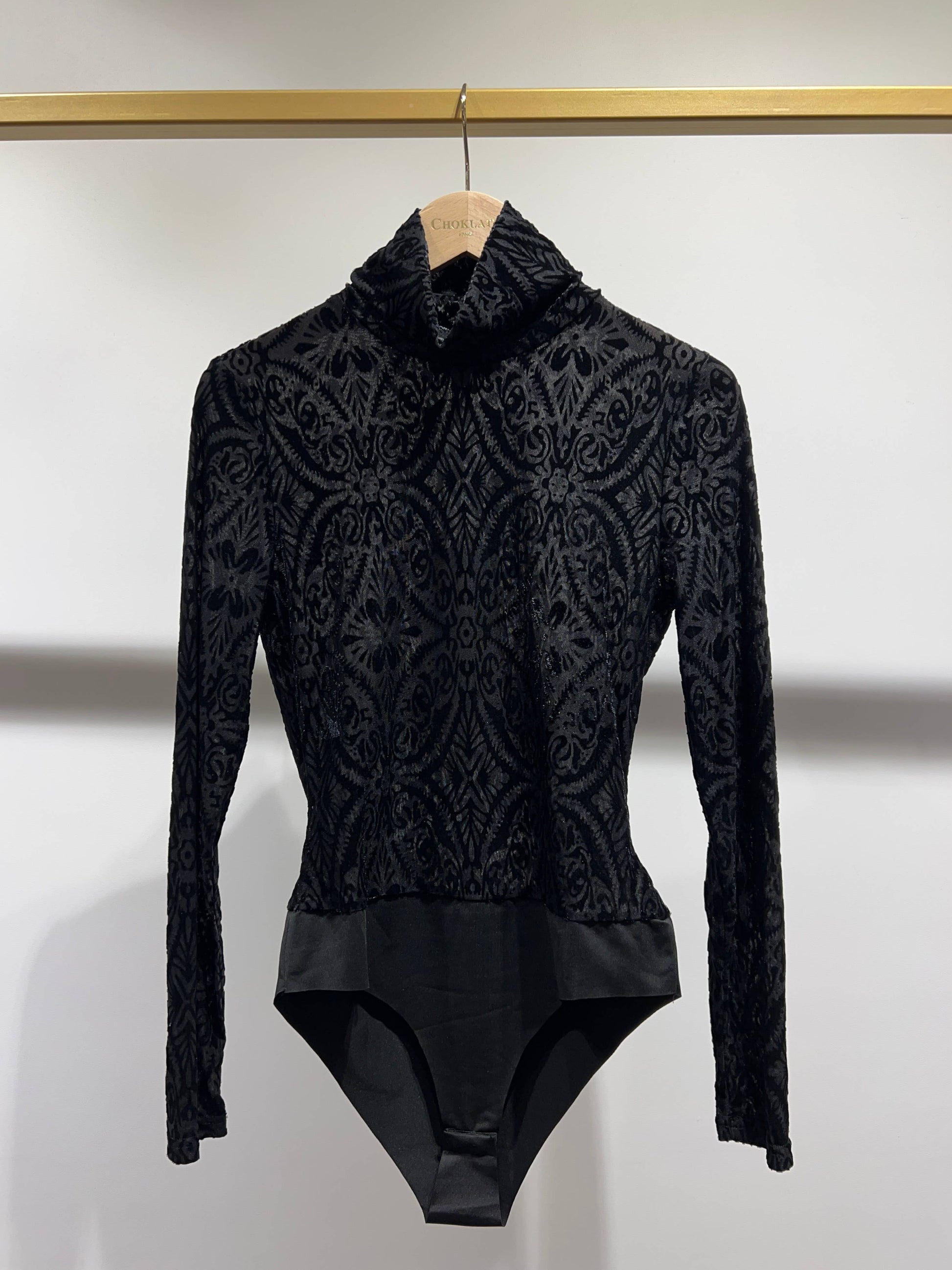 Velvet jacquard turtleneck bodysuit