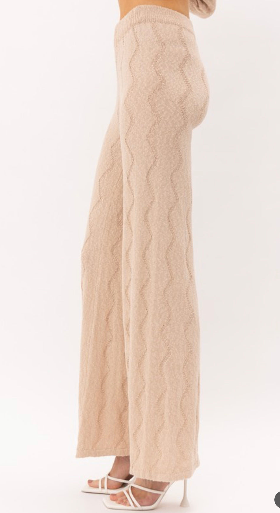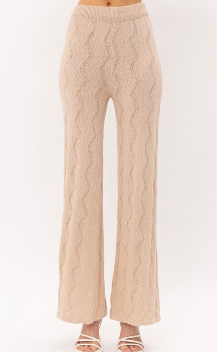 Textured lightweight straight leg knit pant. Elastic waist. Fits true to size,